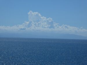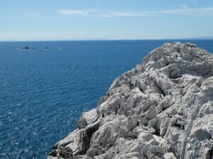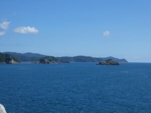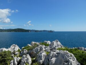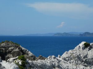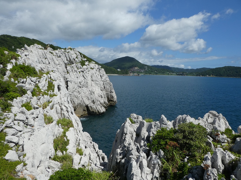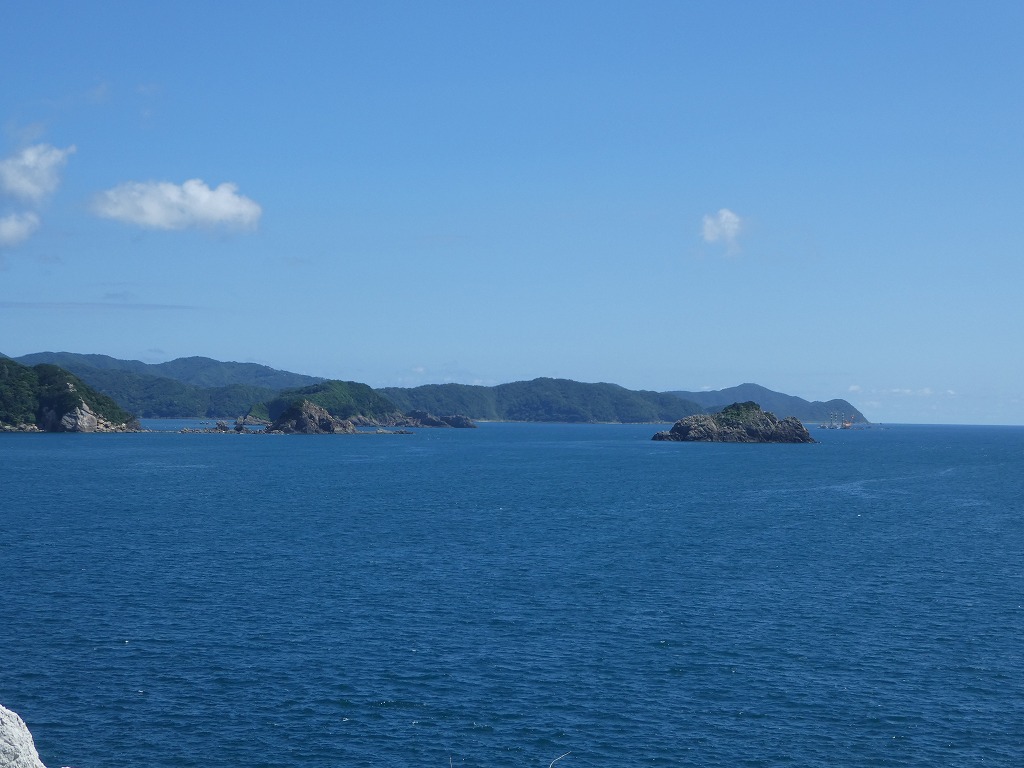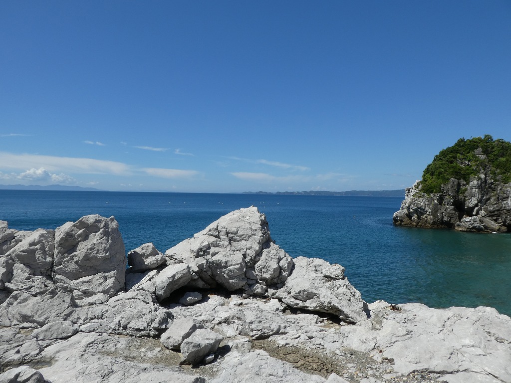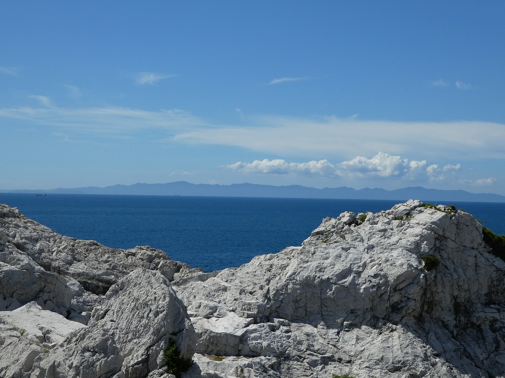 青い海と、石灰岩の白いコントラスト、紀伊水道から、淡路島、四国も望めます。