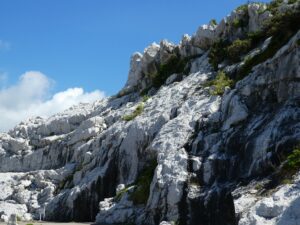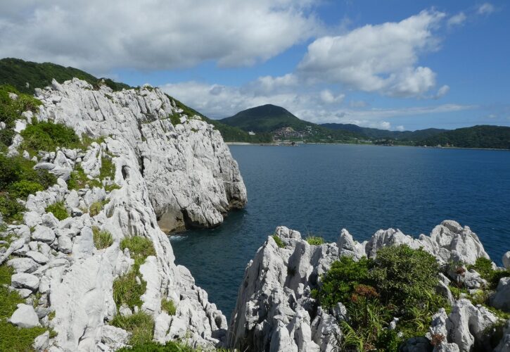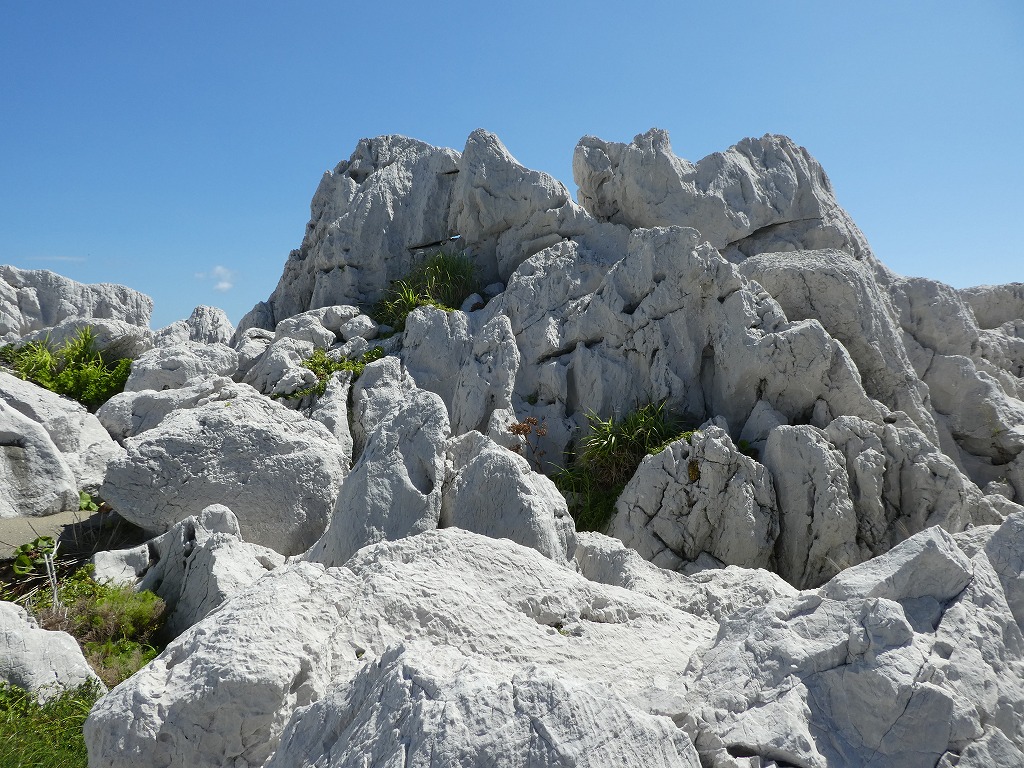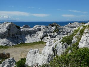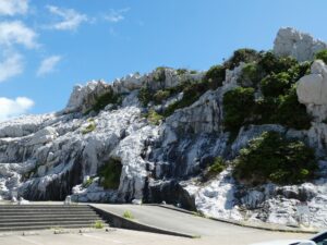 岬全体が白い石灰岩でできており2億5千年以上前のものと言われています。