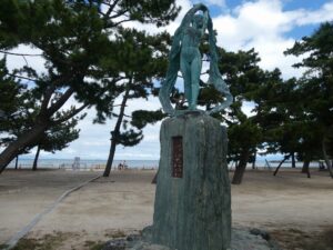 庚午事変と「お登勢」の像が 淡路文化史料館前にあります。