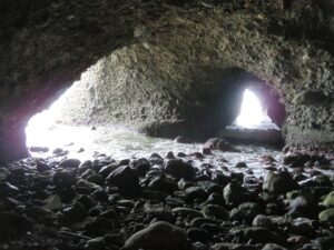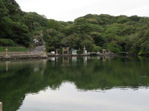 ・そして、笠山と本土との間に砂州ができて陸続きになった時、埋め残されてできた池が明神池です。