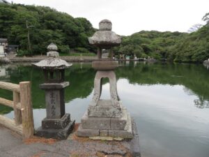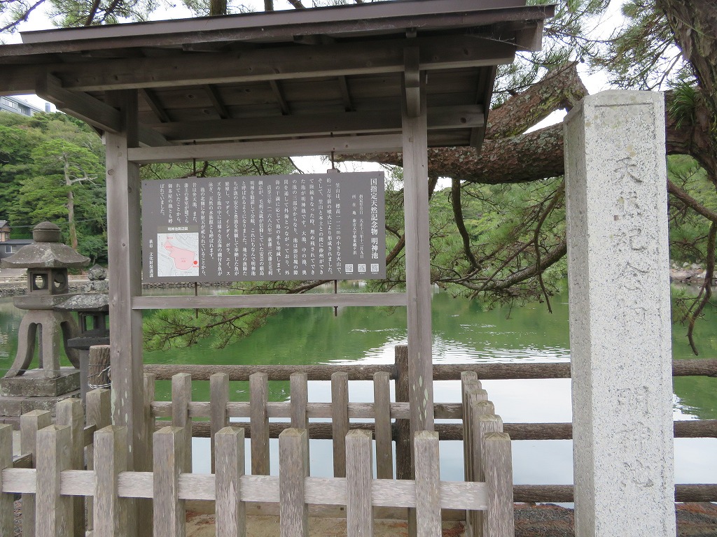 ・明神池は、笠山の東麓にある天然の水族館 国指定天然記念物の海跡湖です。
