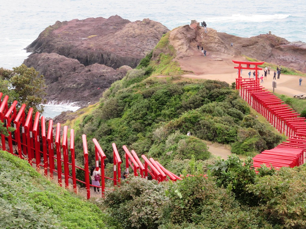 ・日本海に面した崖の上に立ち並ぶ朱色の鳥居で知られる神社「元乃隅神社」に向かいました。