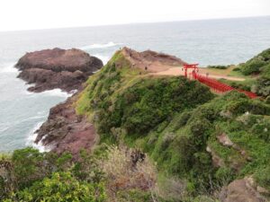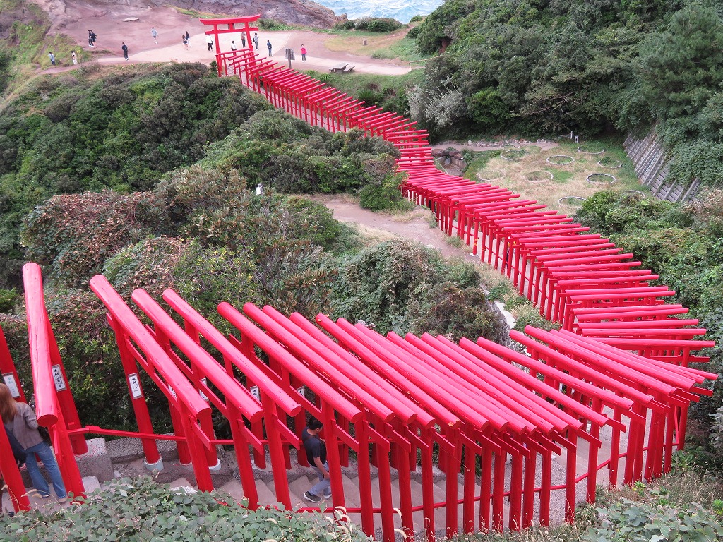 ・日本海に面した断崖絶壁の上に123基の朱色の鳥居が並ぶ姿は圧巻で、「日本の最も美しい場所31選」にも選ばれています。