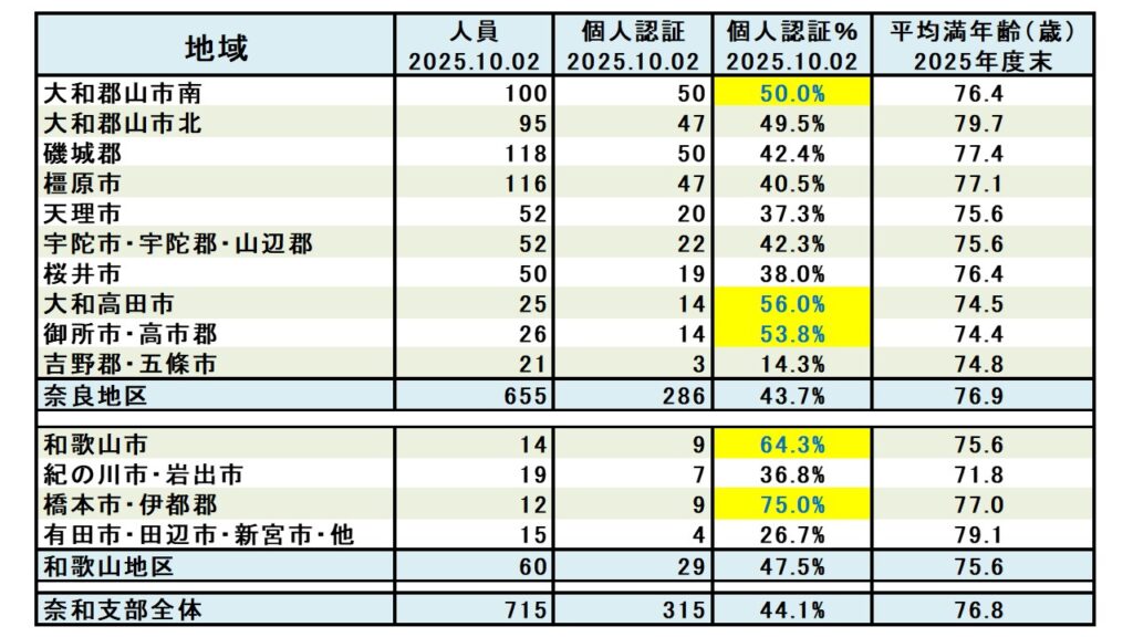 奈和支部は、奈良東支部・奈良西支部以南の奈良県地域と和歌山県全域の広域支部です。