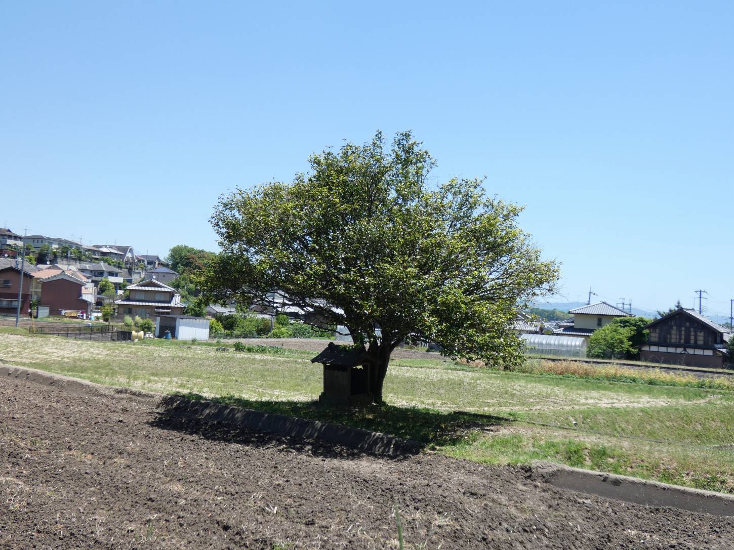 - 手のひらを広げたような形で青く透き通った水を満々と湛える簱尾池。飛鳥時代、聖徳太子が灌漑用に築いたと伝えられています。 奈良県景観資産眺望地点