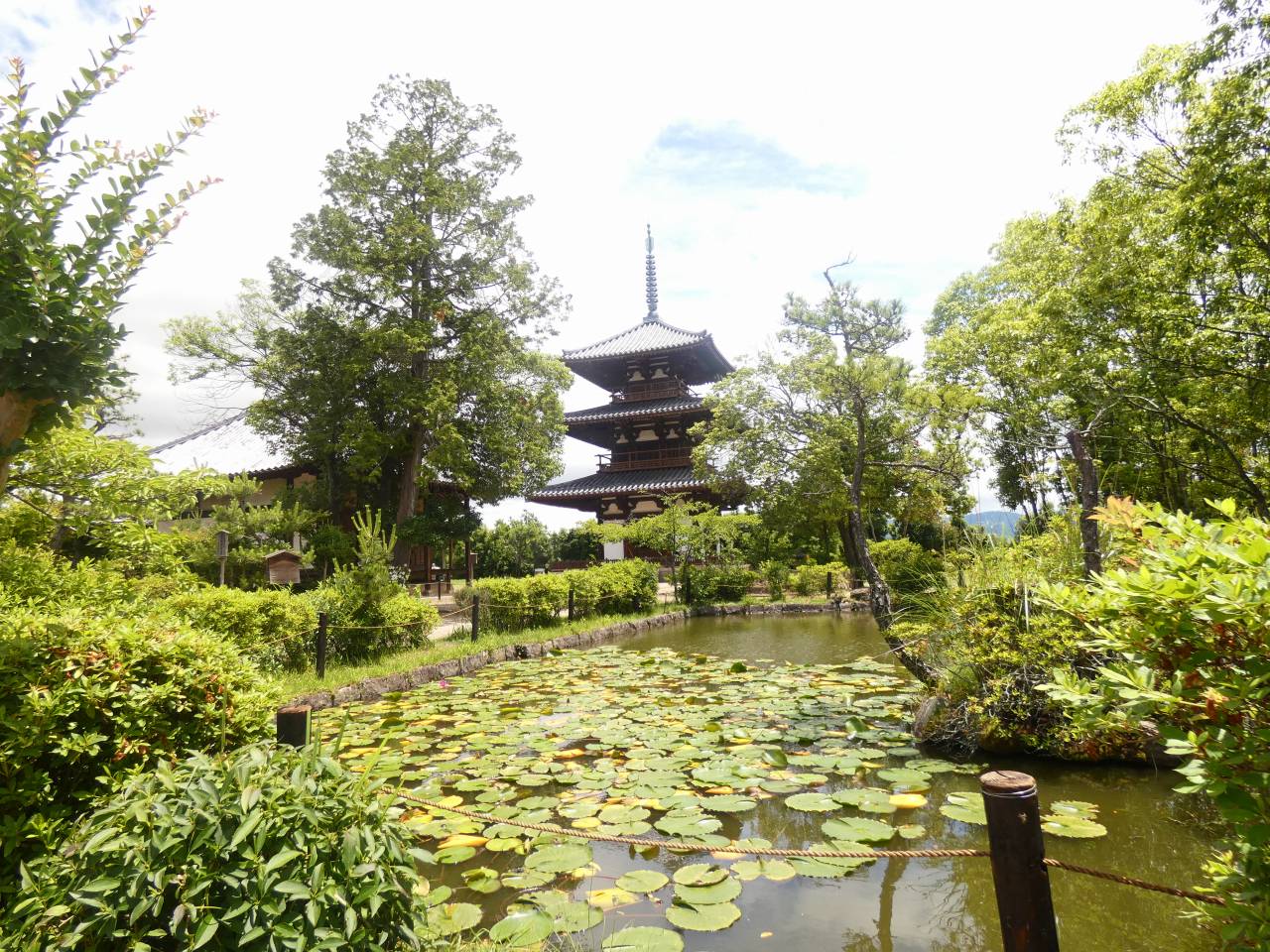 - 法起寺 睡蓮池と三重塔