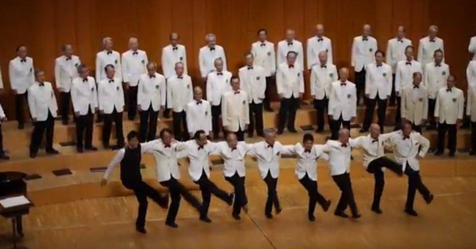 終了後に玄関先のホワイエにて、ご出演の奈良西支部の松川さんから「私の足が一番上がっていたでしょ」との会話がありました。証拠写真ありました、確かに若い常任指揮者の西尾先生より足が上がっています。