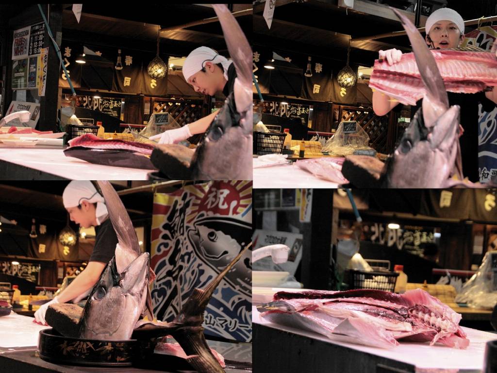 「黒潮市場で」マグロ解体ショーを堪能してきました。