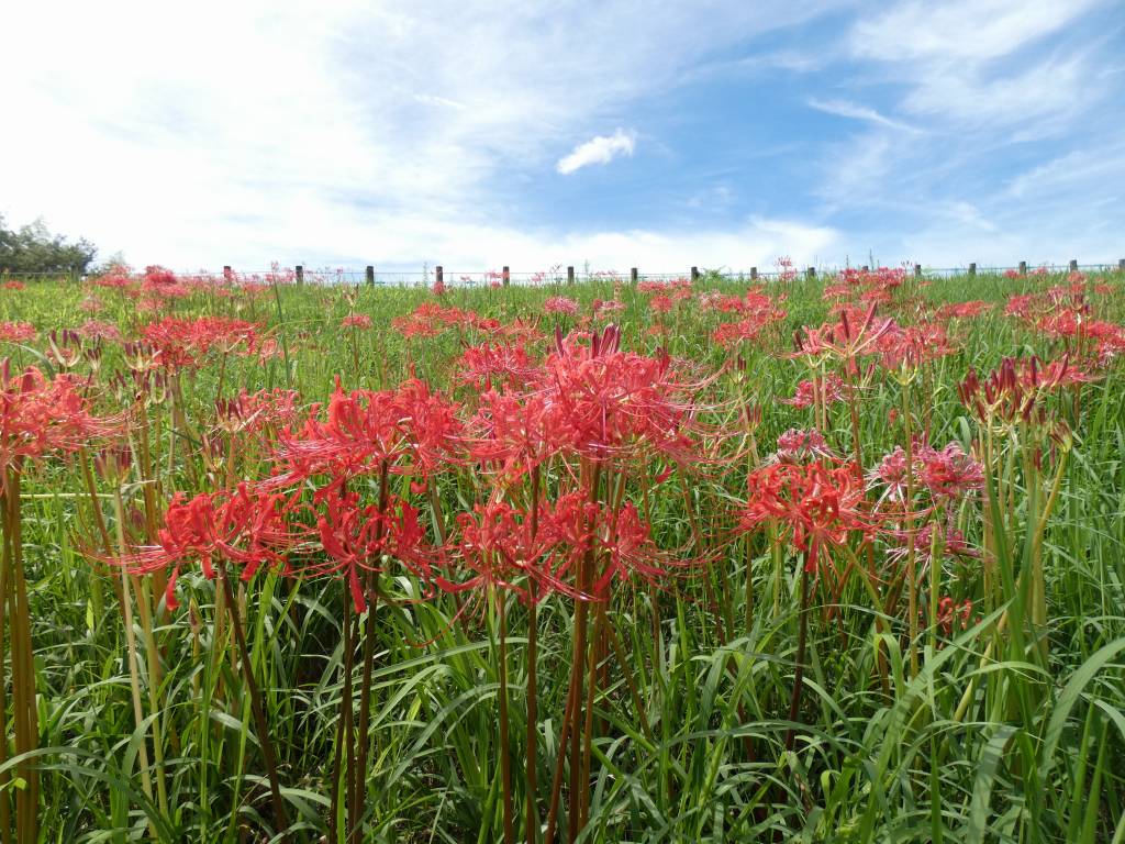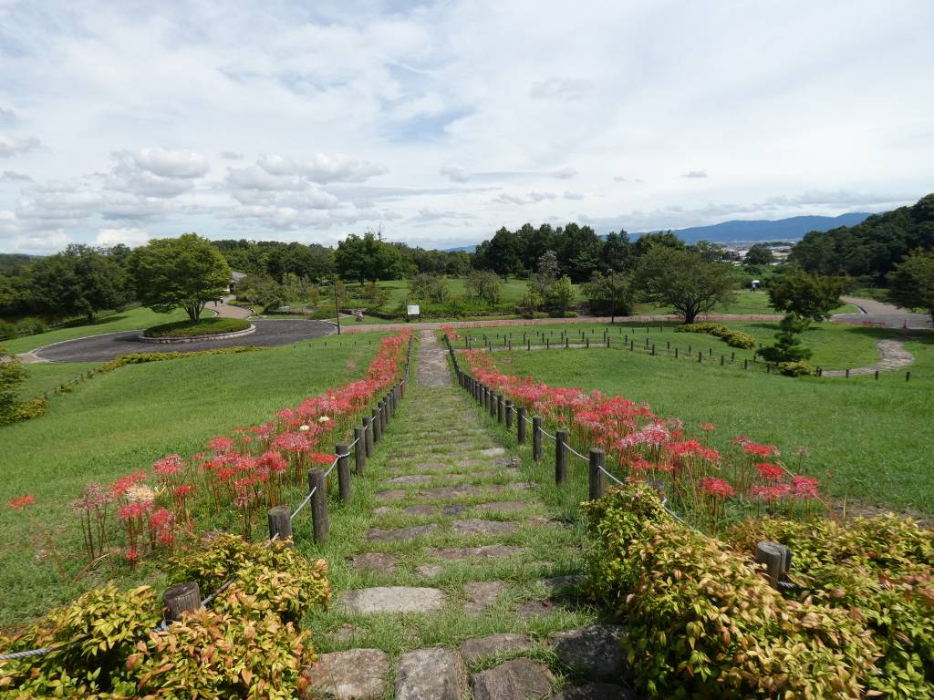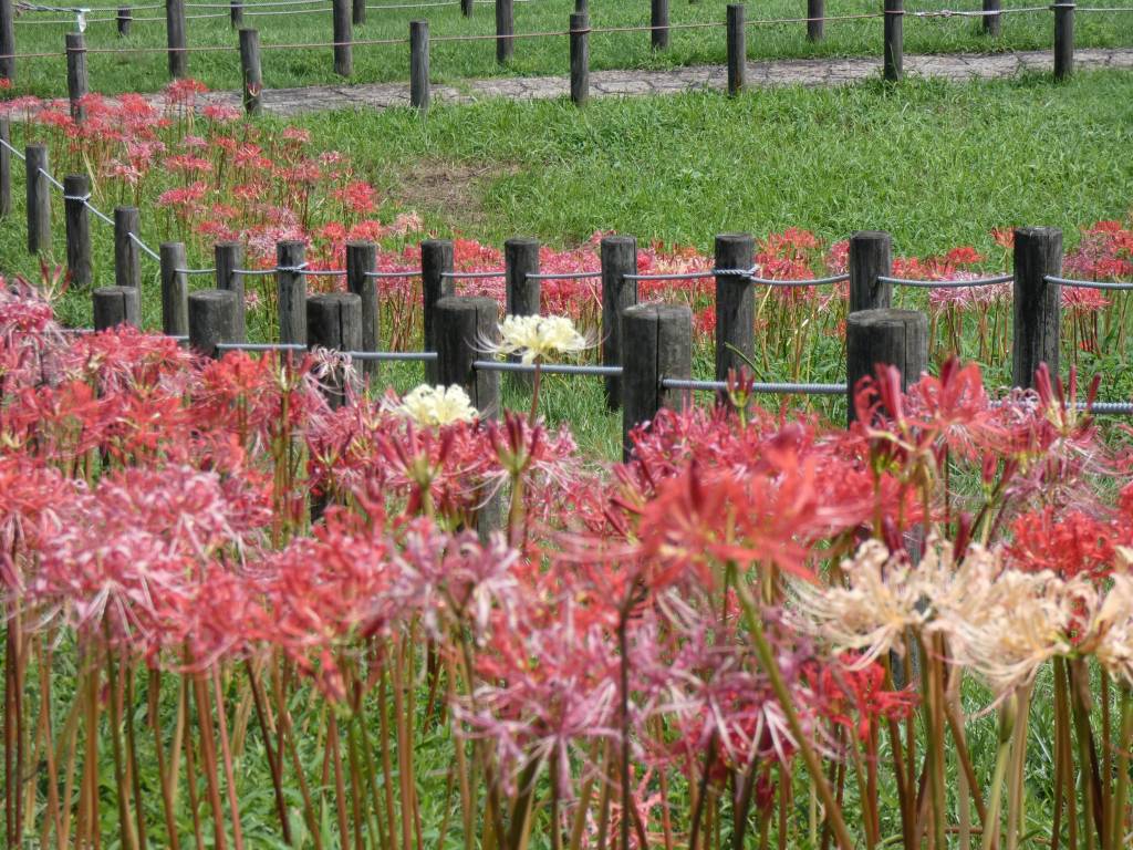 馬見丘陵公園では他所に先駆けて彼岸花が見ごろになりました。随所で色々な花が目を楽しませてくれます。