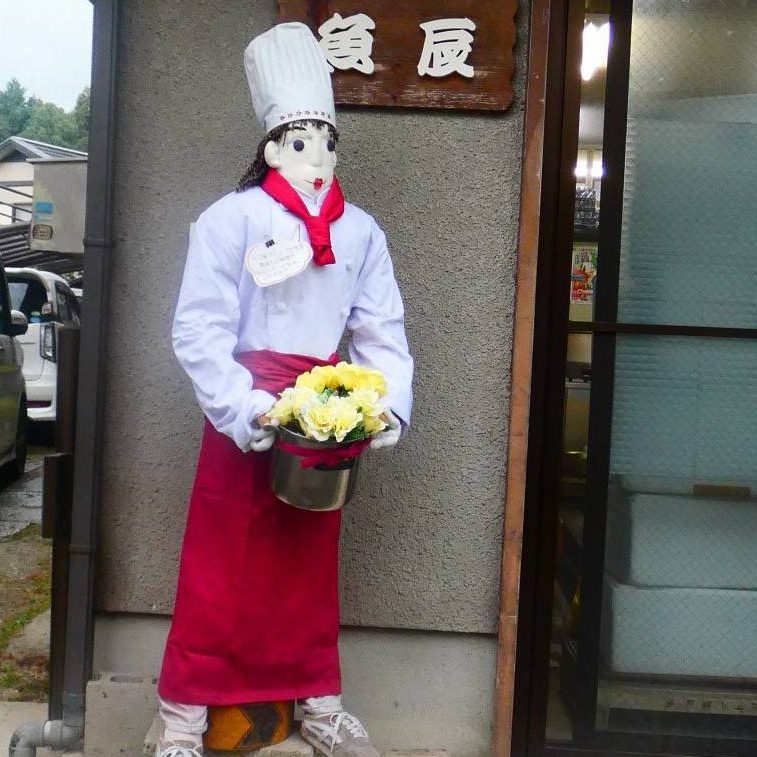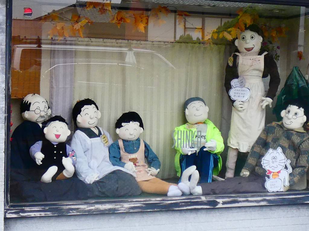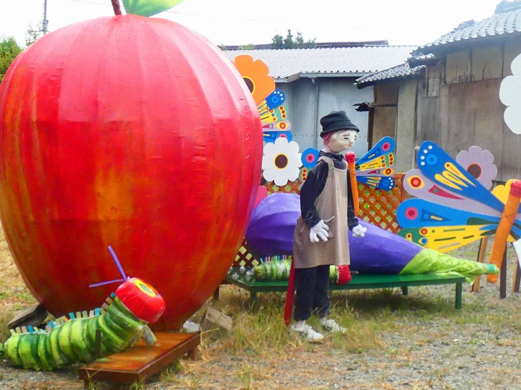 作り手の方から苦労話が聴けました。芯を木組みで作り、肘や膝の関節が曲がるように工夫し、顔の表情もリアルを心がけています。進化した案山子を是非観に行ってください。