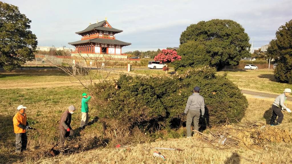 今年最後の緑のボランティアを終え、薬師寺の二塔の雄姿を訪ねて歩きました