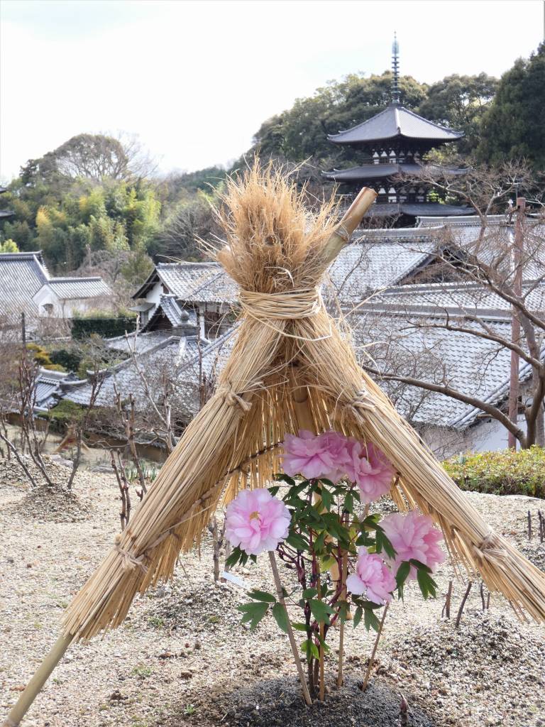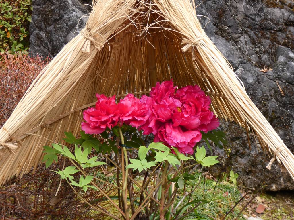 當麻寺奥院の「冬ぼたん」見頃です。寒牡丹との違い、判りますか? 『冬牡丹』のほうが春咲きの牡丹のような咲き方で葉も展開していて、『寒牡丹』は花だけしか咲いていないことにお気づきでしょうか。