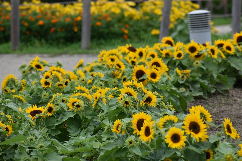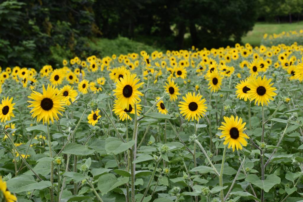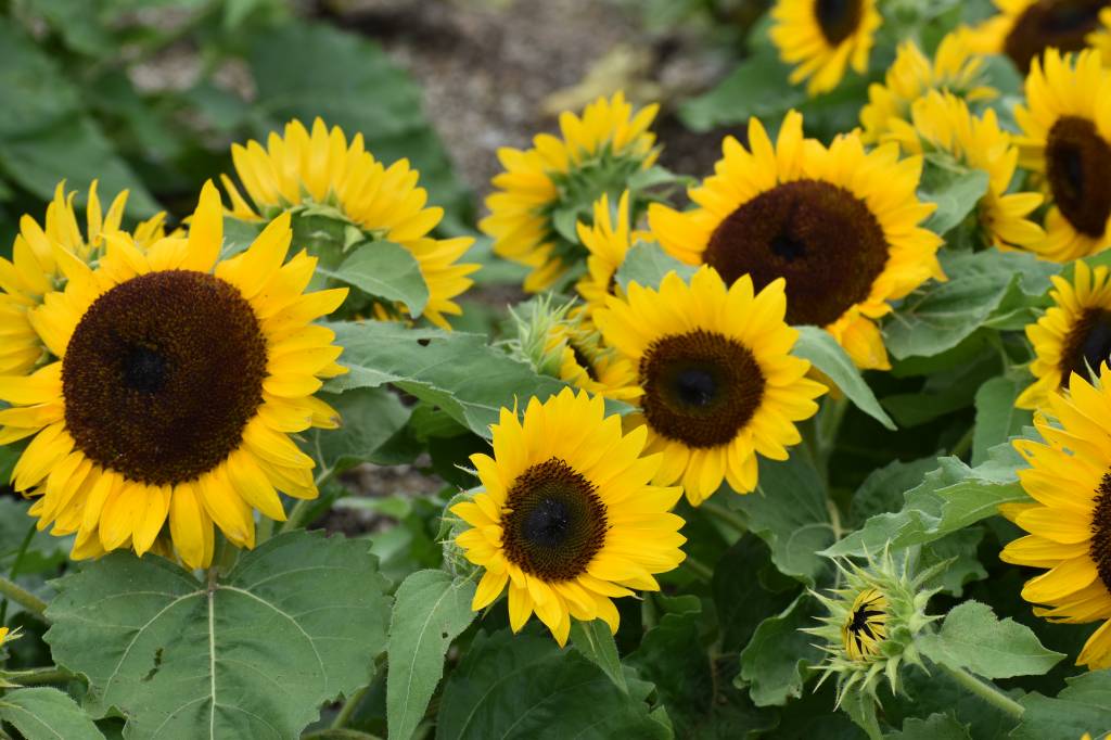 珍しいひまわりも沢山ありました。赤いひまわりはプロカットレッド、上向きに咲くものなど、現在は五分咲きていどでした。