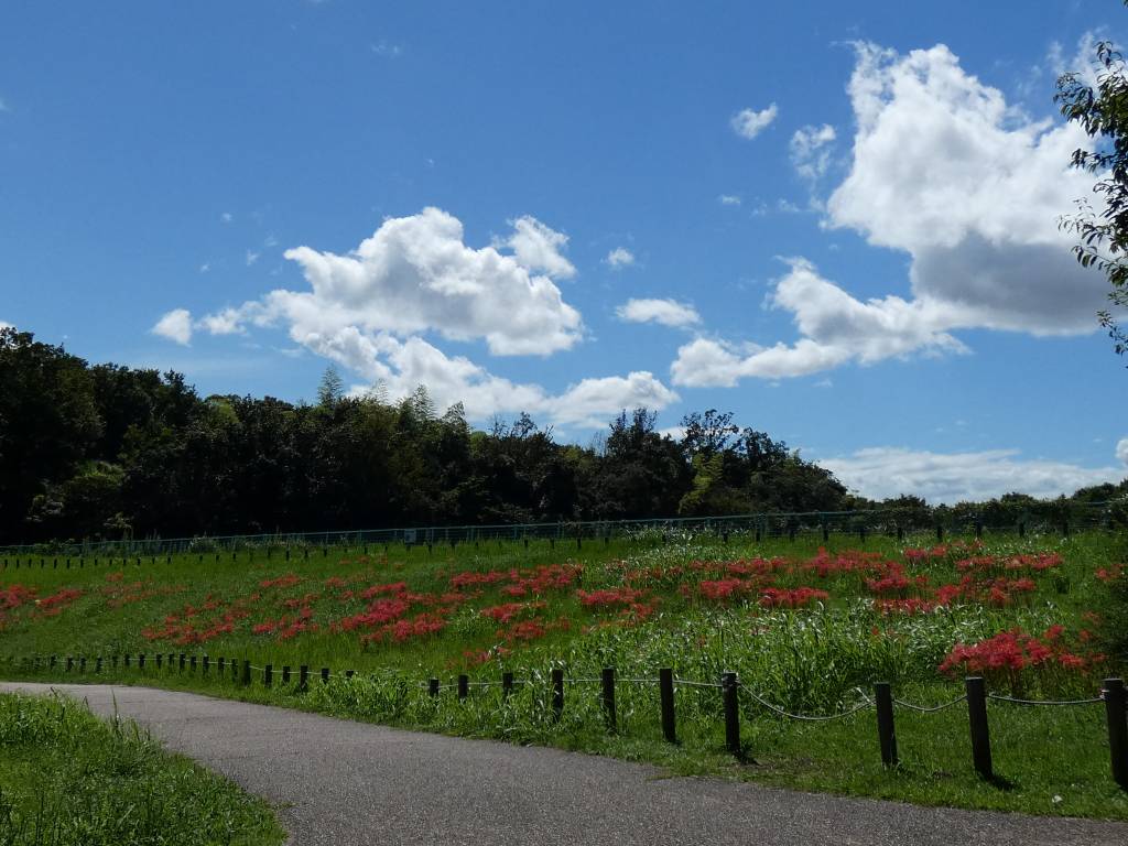 秋の気配が漂い始めた馬見丘陵公園。今年も綺麗な彼岸花が咲きました。