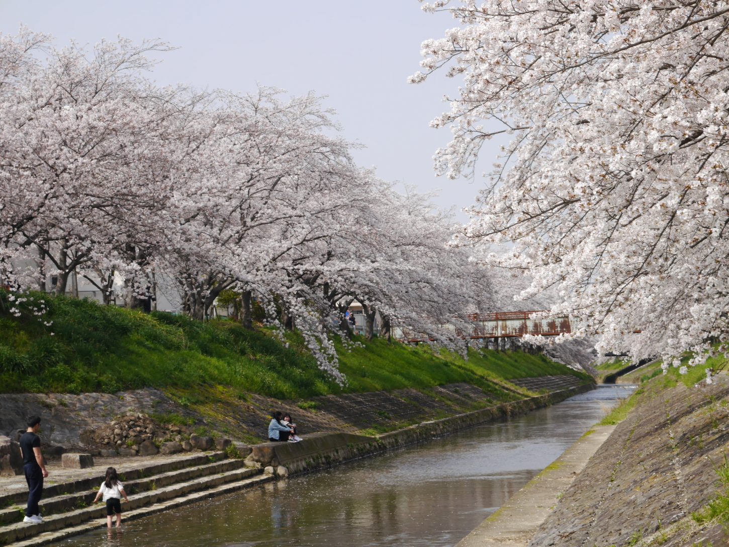 川面にせり出すように生えている「川路桜」は、樹齢160年の古木で、幕末の奈良奉行「川路聖謨」によって植樹されたそうです。