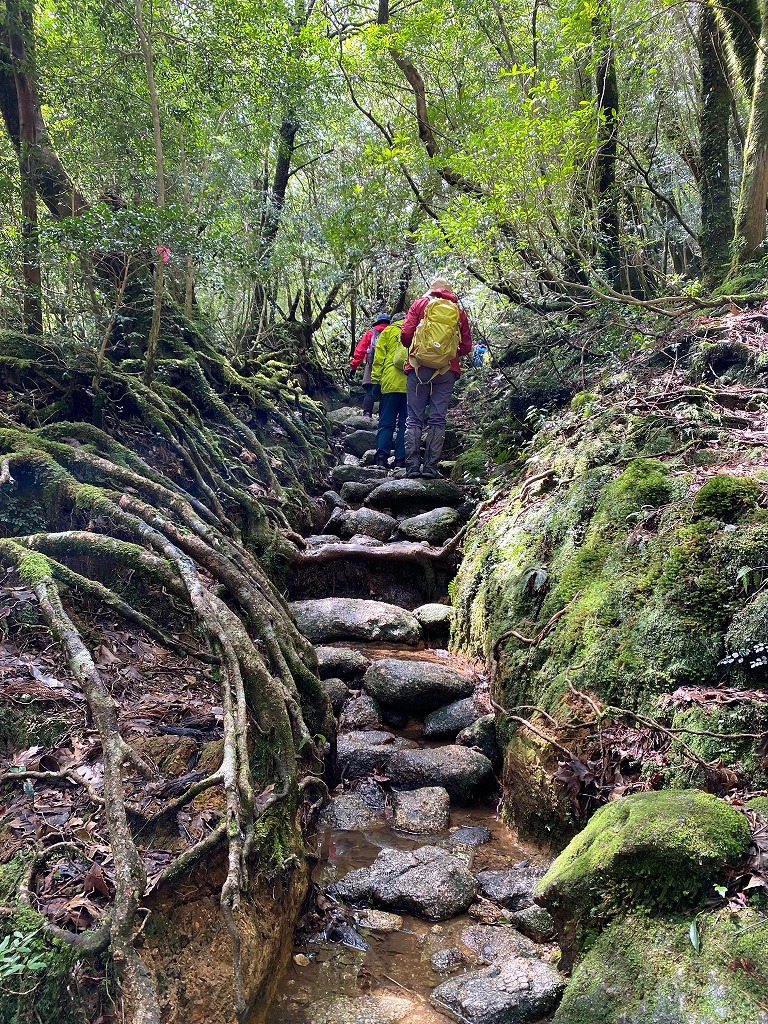 大自然が美しく、全くの手つかずではありませんが、江戸時代より年貢として切り出された屋久杉の切り株には二代目の杉が覆いかぶさるように根を張り、世代を繋いでいました。