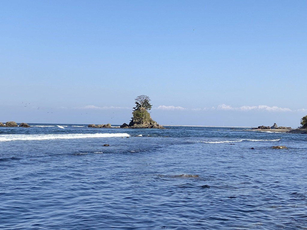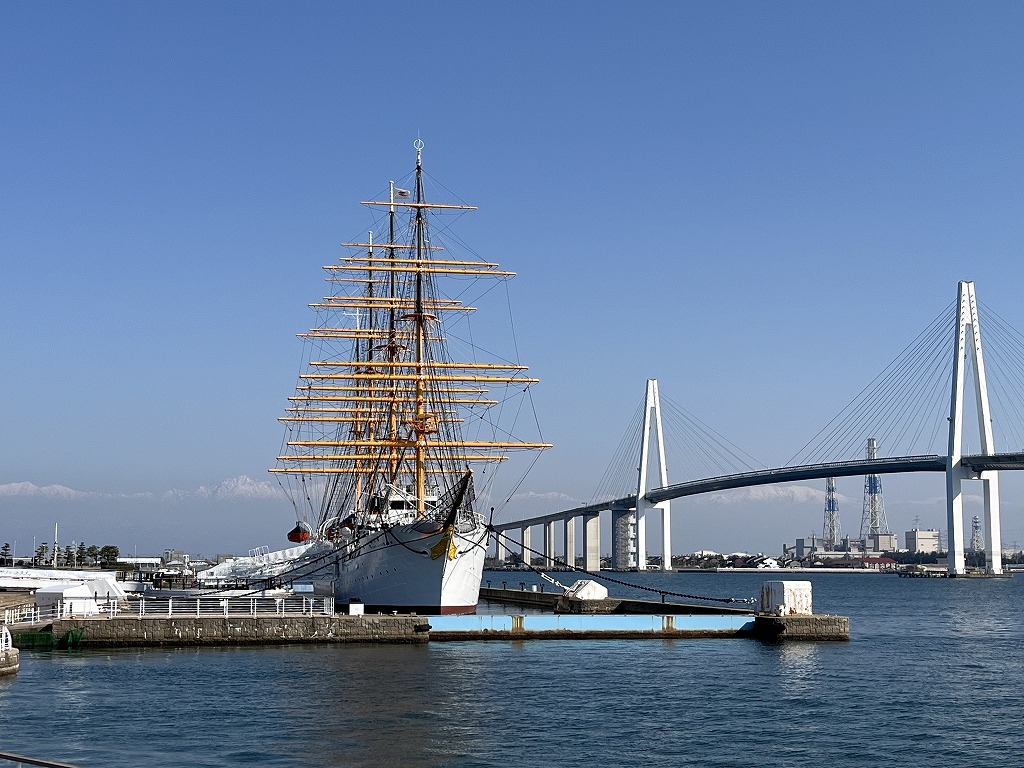 午前中の空は霞んでいましたが午後からは空気が澄んできて立山連峰を拝むことができました。海王丸と少し足を延ばして雨晴海岸の背景は白い雪山。