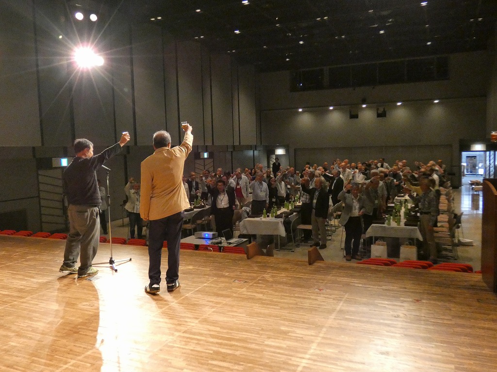 時間が経つのを忘れての歓談の後、締めは田中副支部長の一丁締めでお開き。集合写真を撮影して解散となりました。