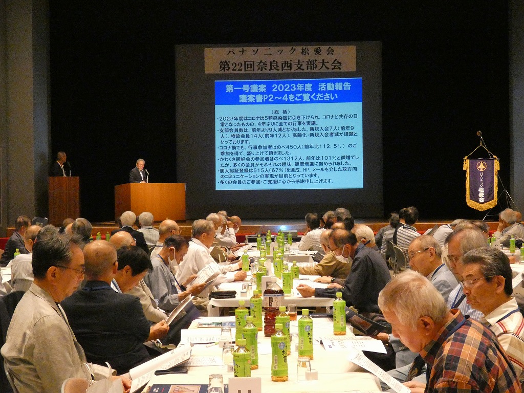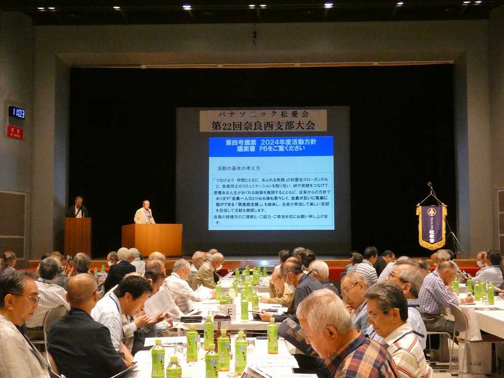 2024年度 第22回 奈良西支部大会は、5月26日10時30分より84名の支部会員と本部より宮崎副会長をお迎えし、生駒市コミュニティセンターで開催しました。