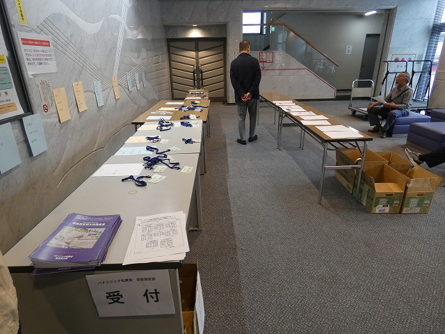 大会会場での会場設営は事前に応援をお願いした会員の皆さんと机や椅子を並べるところから始まりました。