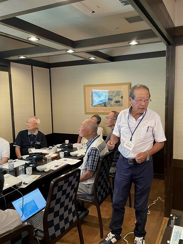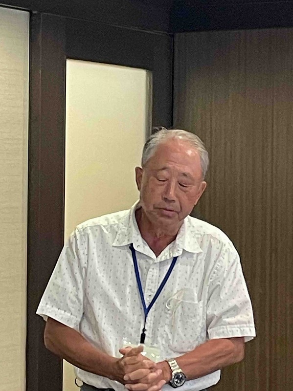 冒頭、司会(両地区担当役員の児島)からこの一年に亡くなられた方々(北地区5柱、南地区2柱)のお名前を紹介し、故人を偲んで全員で黙祷しご冥福をお祈りしました。
