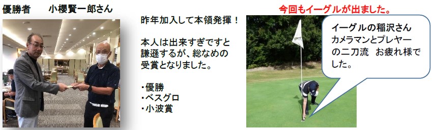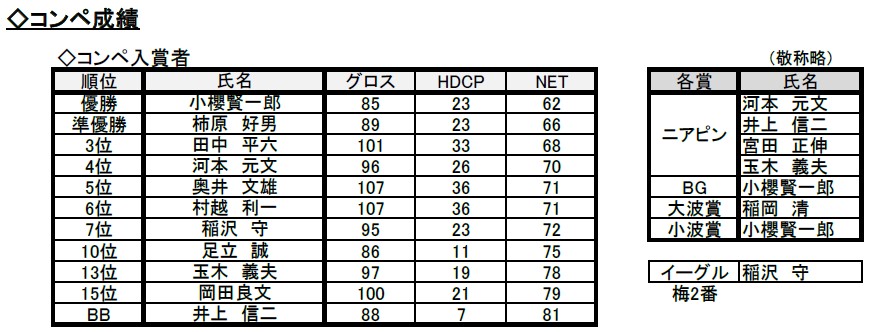 〇場 所 きさいちカントリークラブ 梅コース 9時14分スタート、後半 松コース
