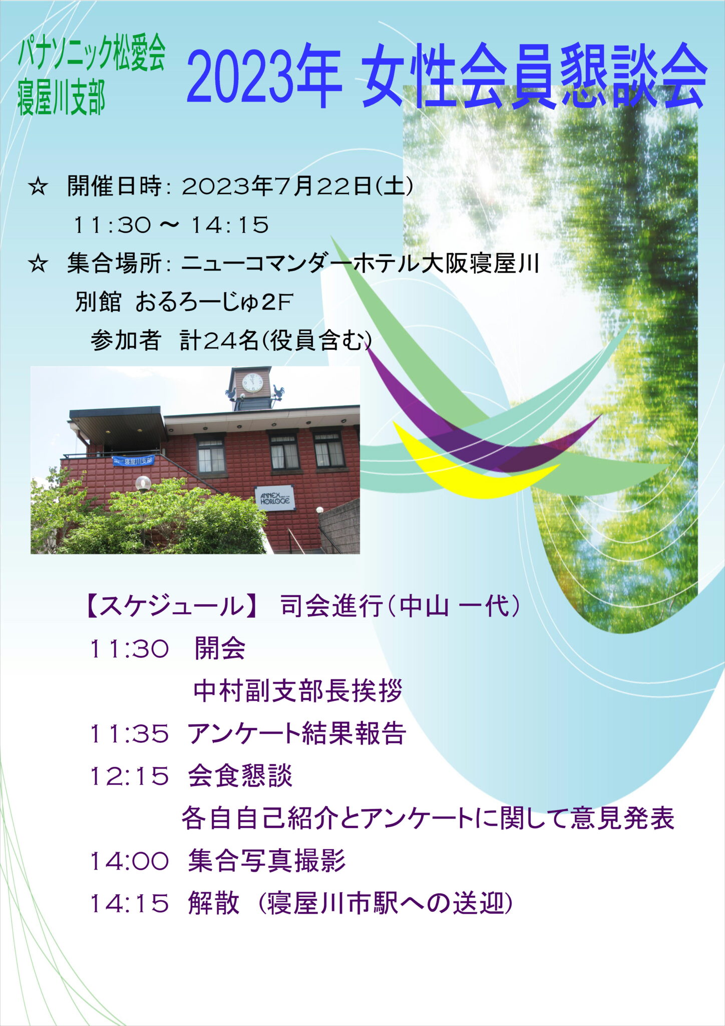 2023.08.2 女性会員懇談会, 支部行事, 支部行事/同好会 記録, 本部掲載, 行事検索連動 2023年 女性会員懇談会 アンケート結果はこちらから おもしろビールサバー動画 ニューコマンダーホテル おるろーじゅ 受付・会計の三谷さん 中村副支部長ご挨拶 女性会員アンケート結果発表 中山さん 全員で「ハイ、チーズ」 写真スライドショーはこちら 女性会員懇談会, 支部行事, 支部行事/同好会 記録, 本部掲載, 行事検索連動 コメント: 1 バーディ会 23年7月18日例会前の記事 ボウリング同好会 活動報告 8月5日次の記事