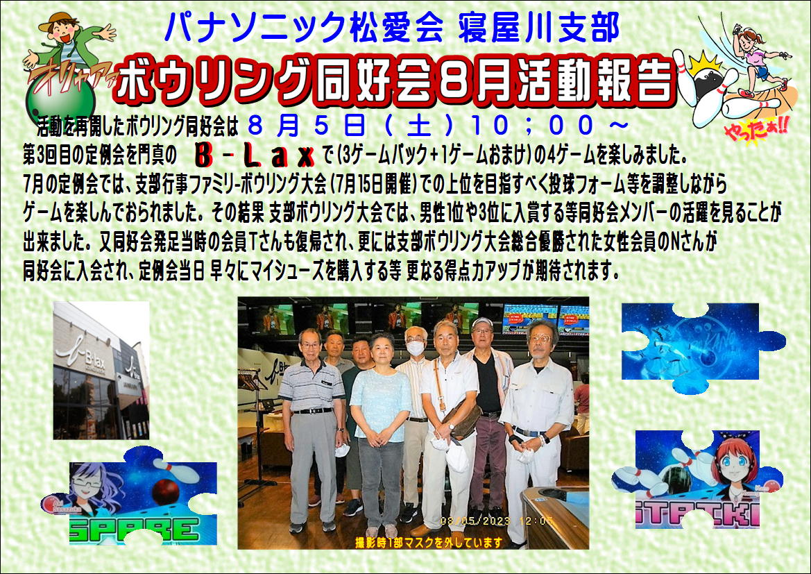 2023.08.7 ボウリング, ボウリング 活動実績, 支部行事/同好会 記録 ボウリング同好会 活動報告 8月5日 ボウリング, ボウリング 活動実績, 支部行事/同好会 記録 コメント: 0 2023年 女性会員懇談会前の記事 会員動静 更新日:2023年 8月25日次の記事