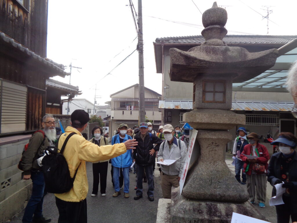 秋晴れの中! 4名の初参加者を含めて 48名にて交野の交通の要衝、五街道の中の 東高野街道・私部街道・山根街道が交わる紅葉の街並みの散歩を楽しみました。