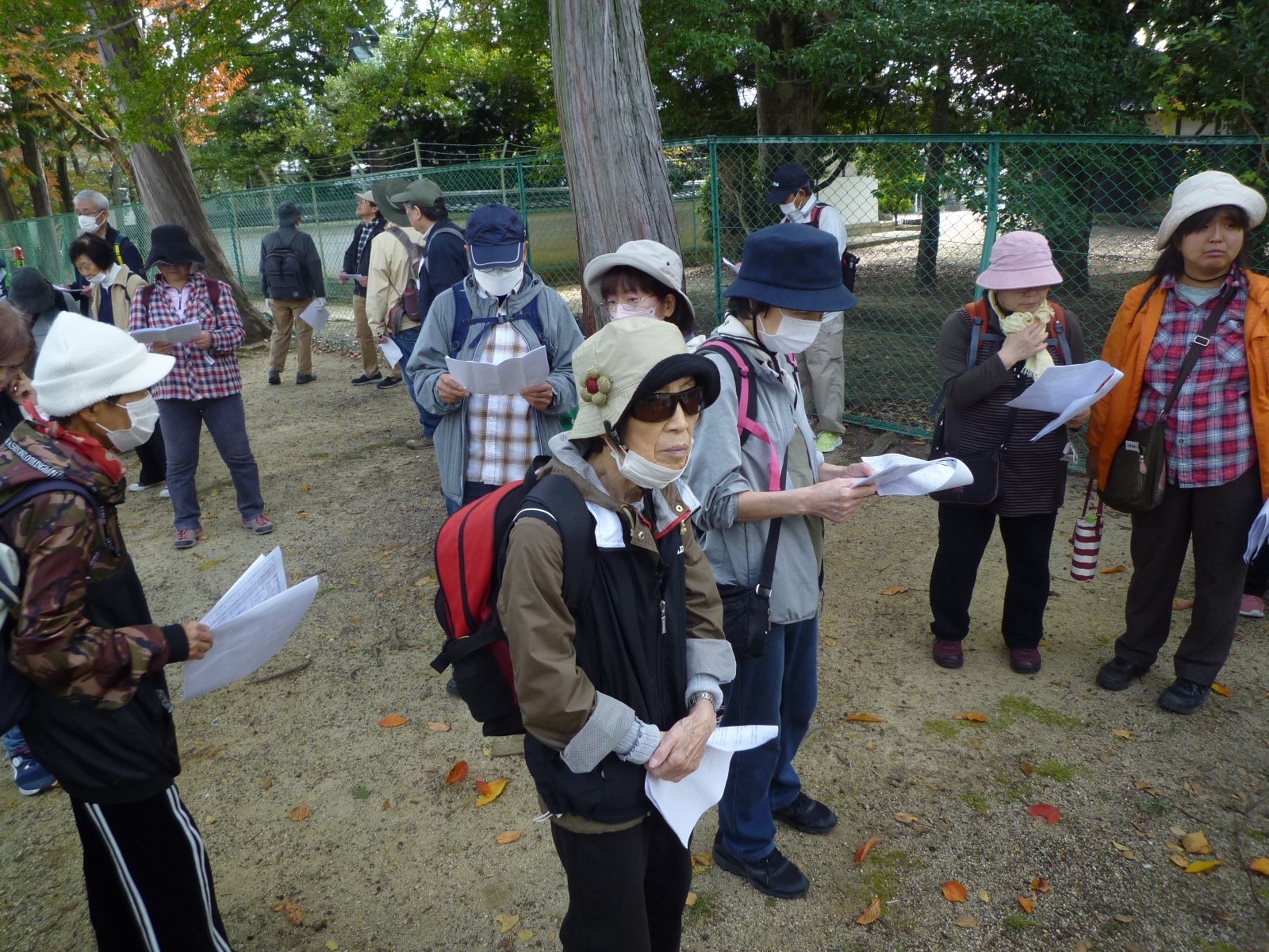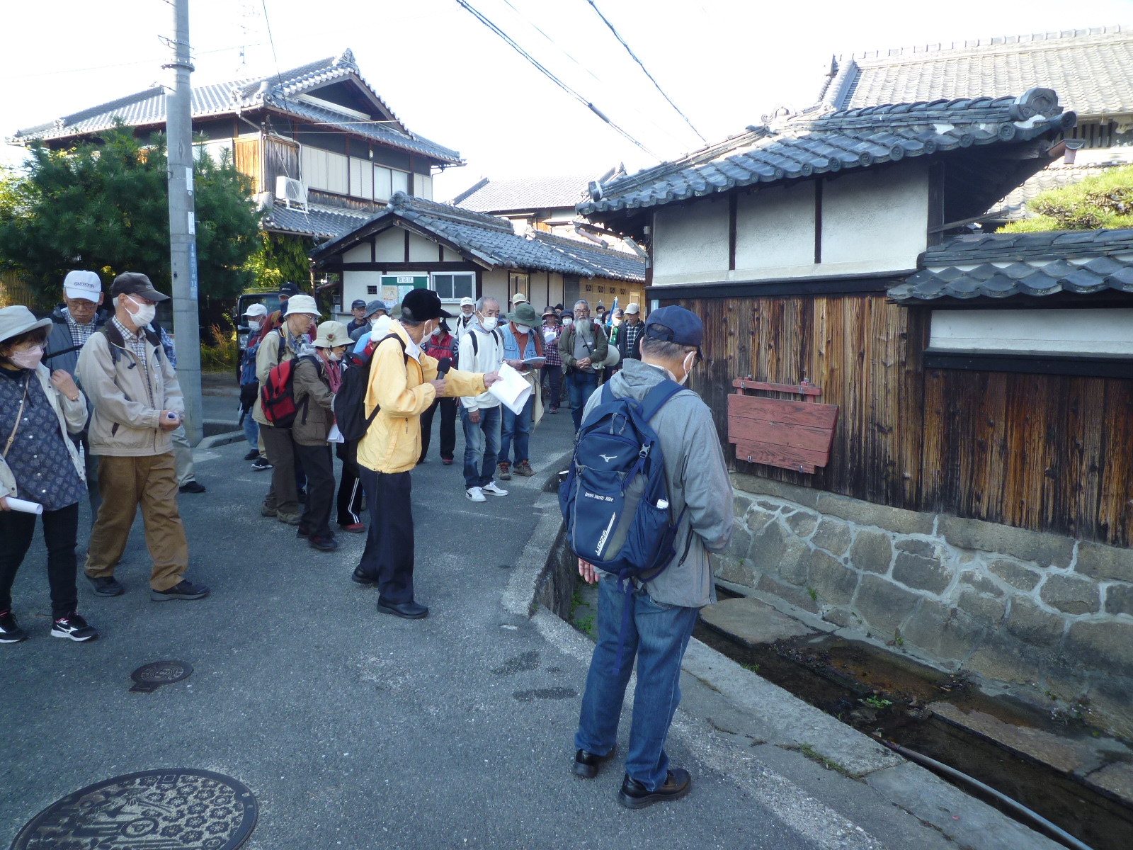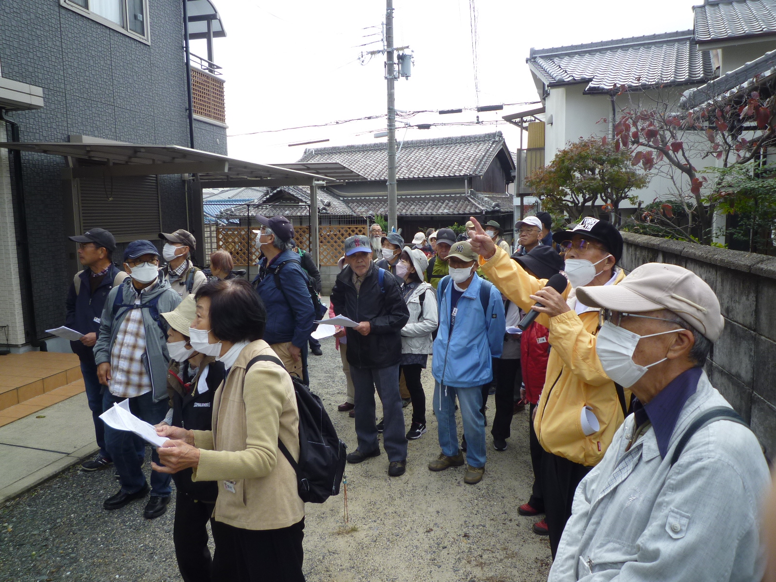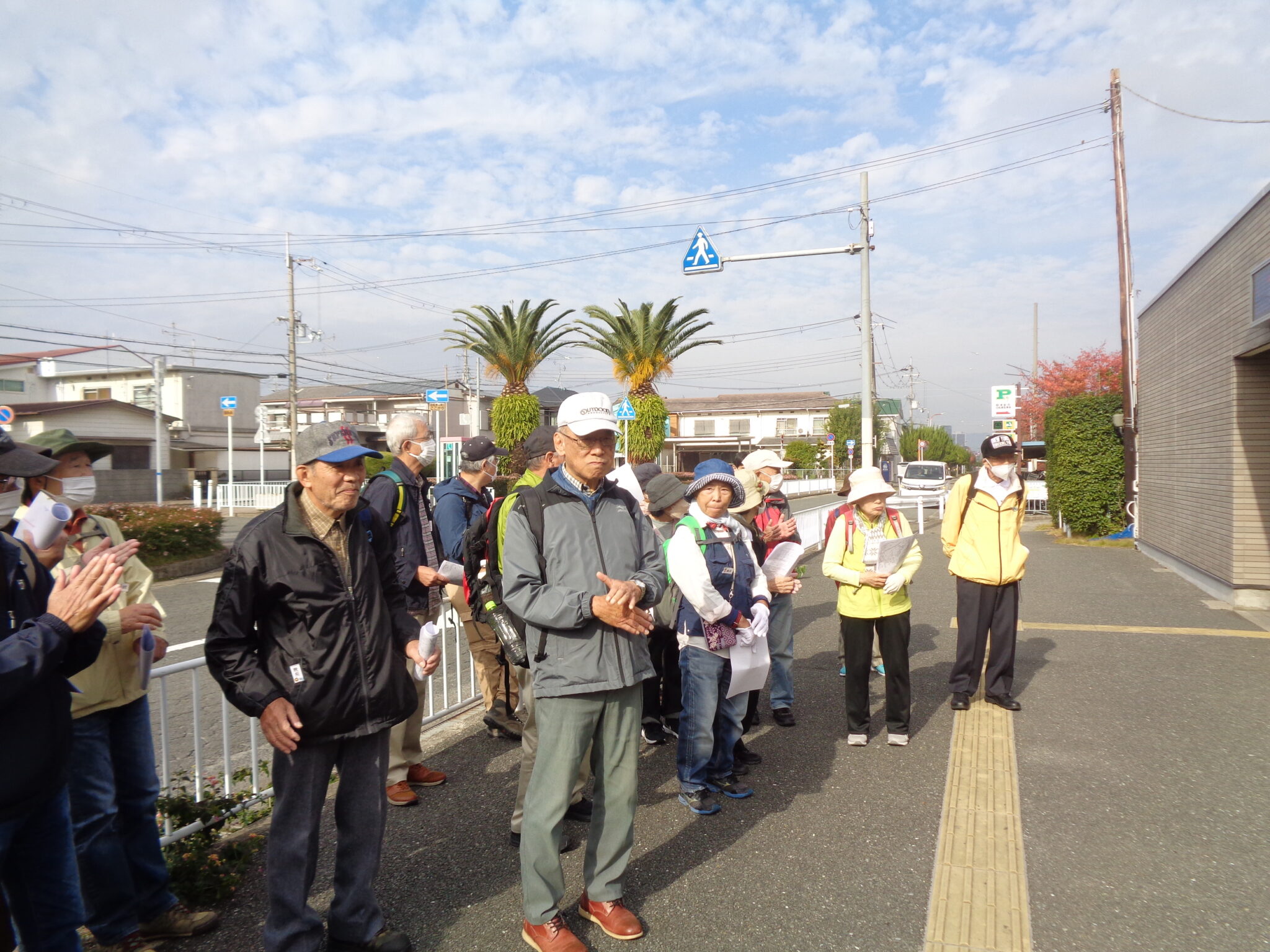 秋晴れの中! 4名の初参加者を含めて 48名にて交野の交通の要衝、五街道の中の 東高野街道・私部街道・山根街道が交わる紅葉の街並みの散歩を楽しみました。