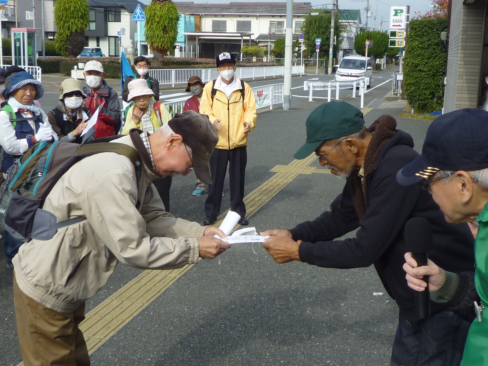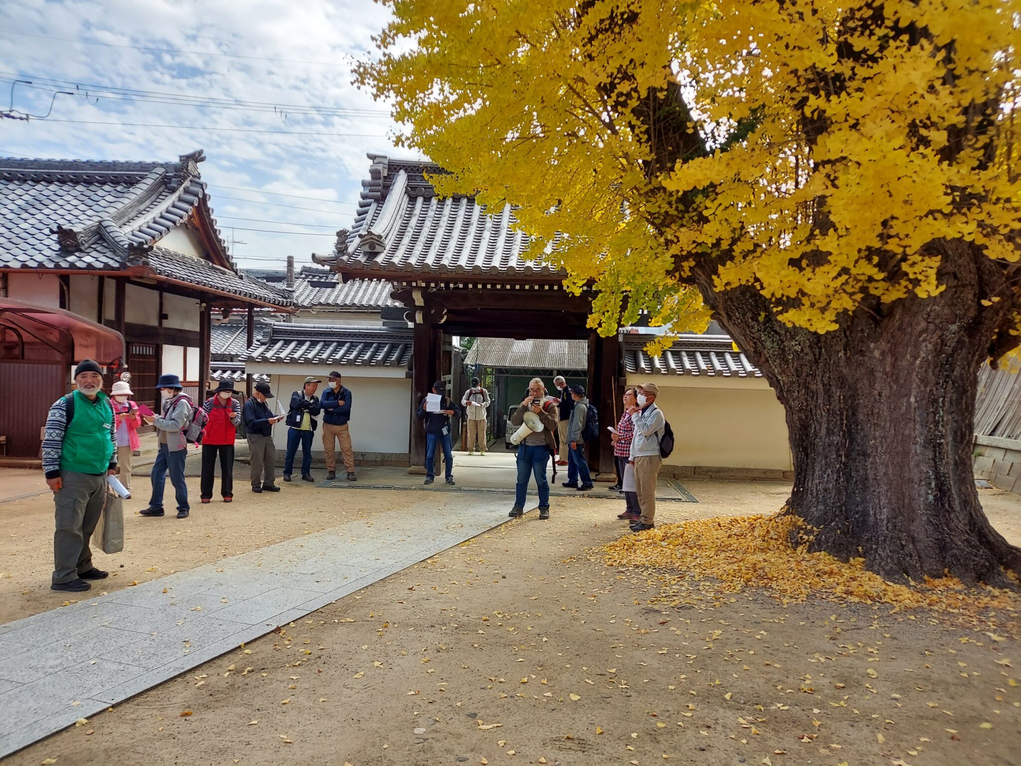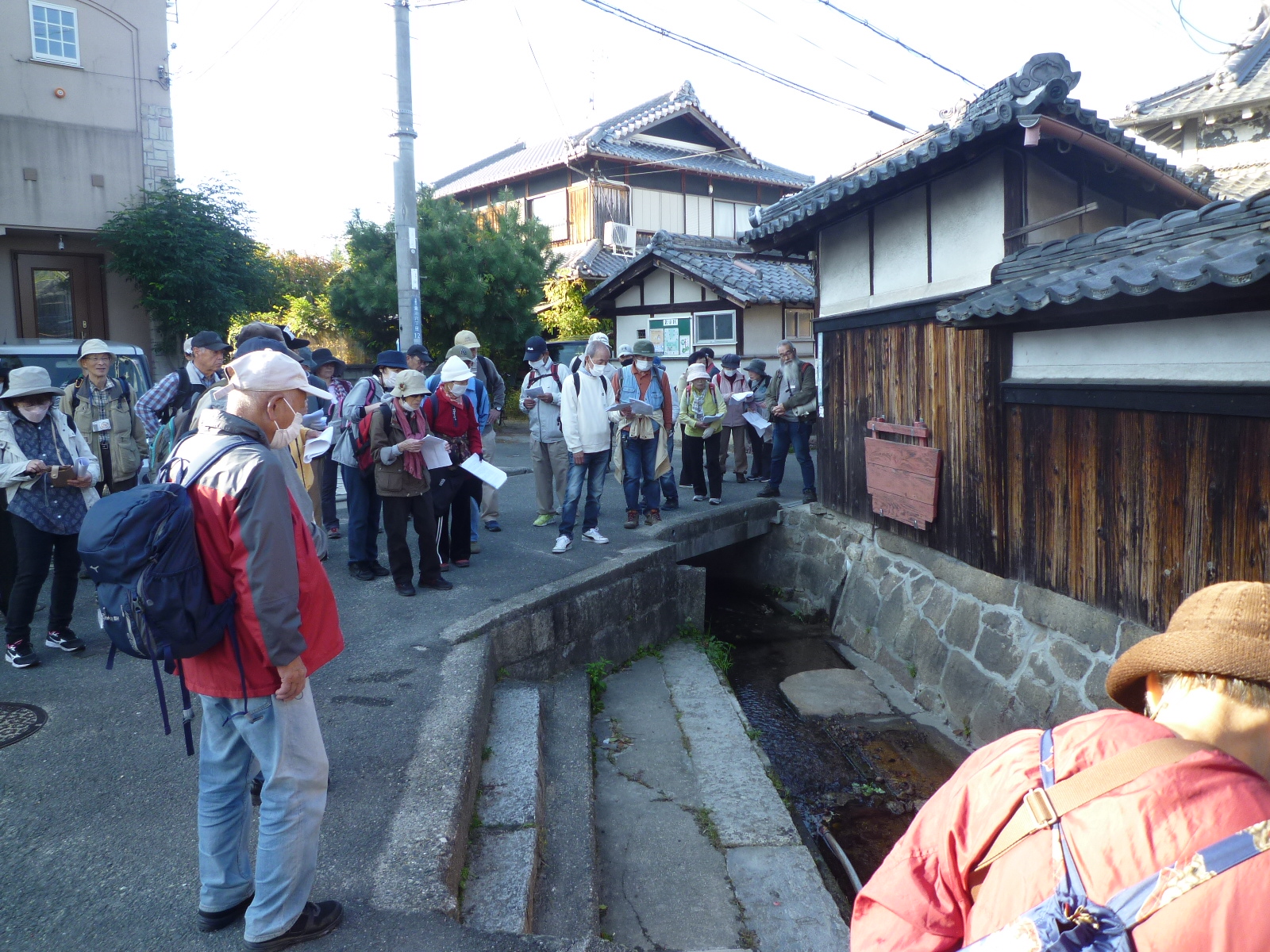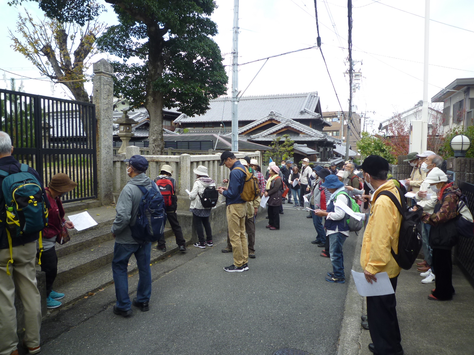 秋晴れの中! 4名の初参加者を含めて 48名にて交野の交通の要衝、五街道の中の 東高野街道・私部街道・山根街道が交わる紅葉の街並みの散歩を楽しみました。