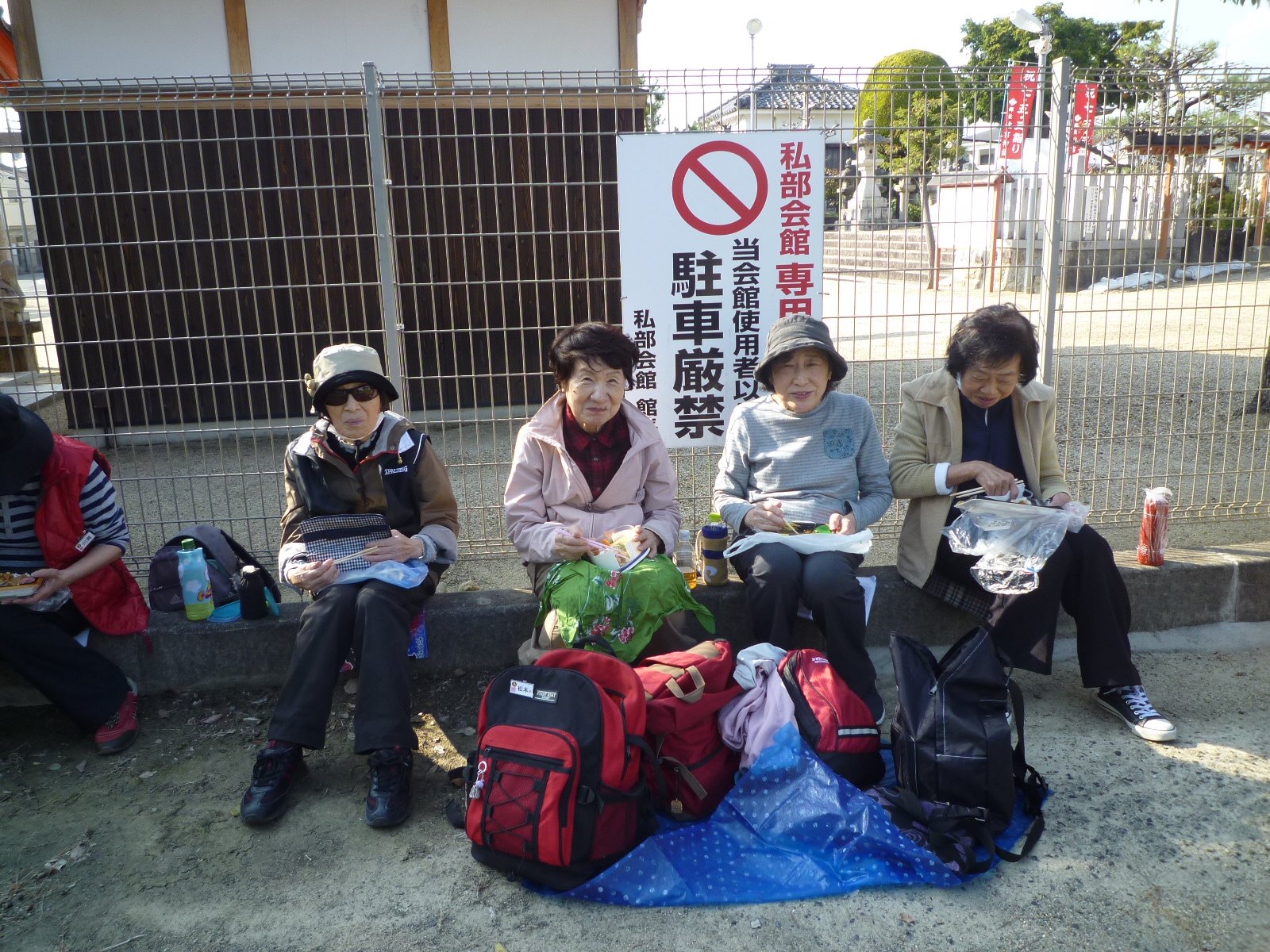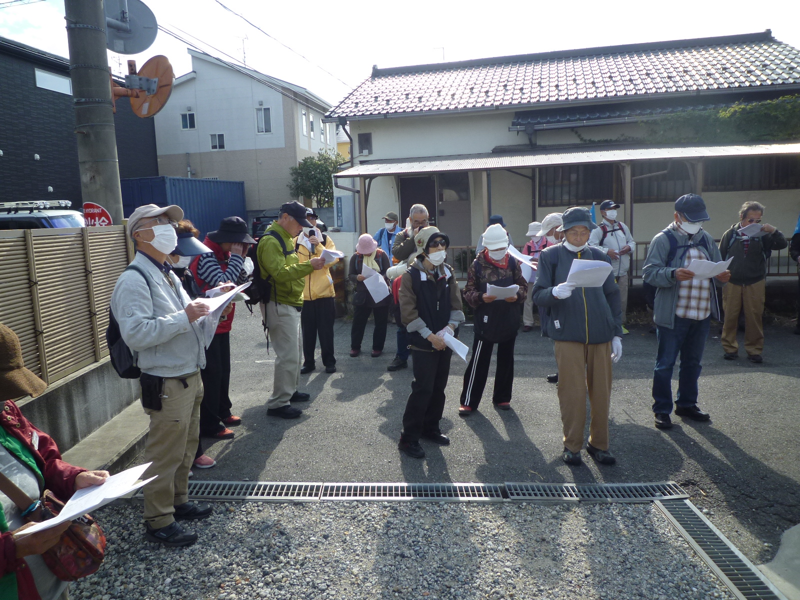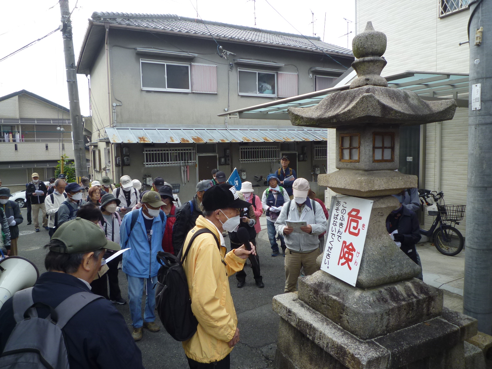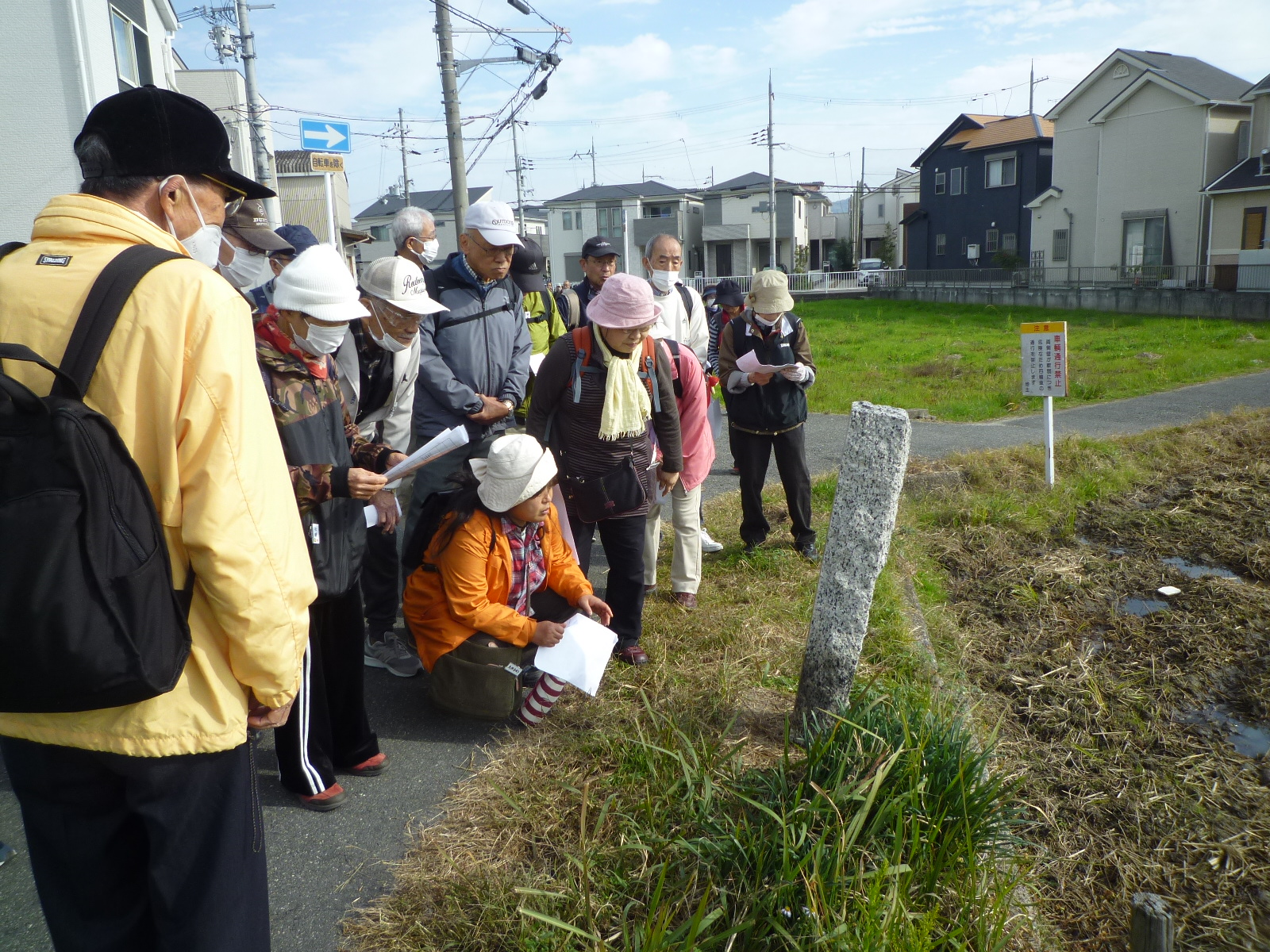 (出発)⇒丸山古墳⇒古代天野川地方條理区画五條通碑⇒明遍寺⇒白鳳時代長宝寺跡碑⇒郡津神社⇒私部城跡⇒ 私部の三大寺⇒無量光寺(集合写真)⇒住吉神社御旅所⇒北田家住宅⇒住吉神社⇒ 空禅藪(昼食) ⇒ 廃長福寺 ⇒ 教育文化会館 ⇒ 機物神社(集合写)⇒(解散)
