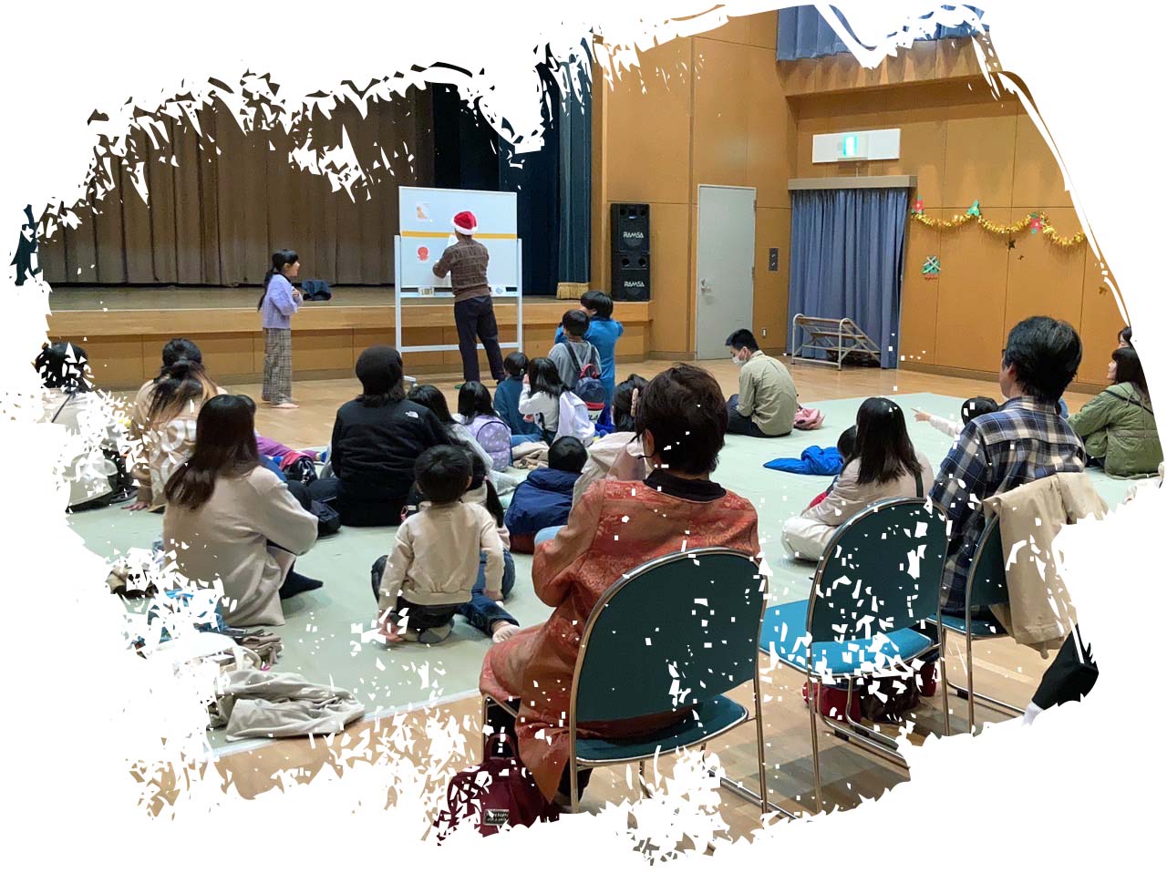 “夢とロマンと不思議な世界を提供”して子ども会・町内会・老人会・などからのご要望があれば出張演出している“寝屋川マジシャンズクラブ”です。今回は寝屋川市立エスポアール多目的ホールで開催された「季節行事 クリスマスのつどい」の会場において、パフォーマンスを披露しました。