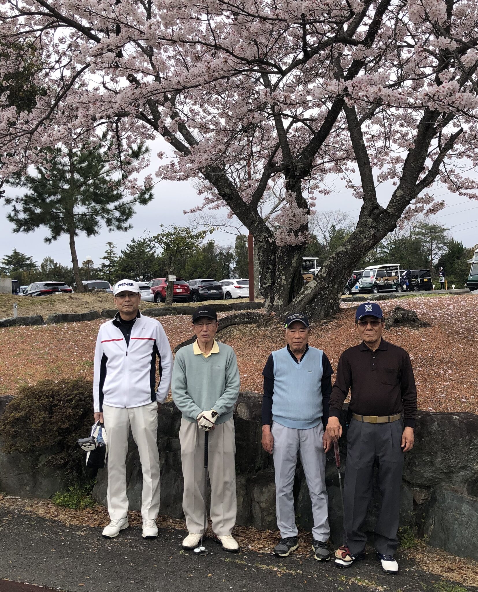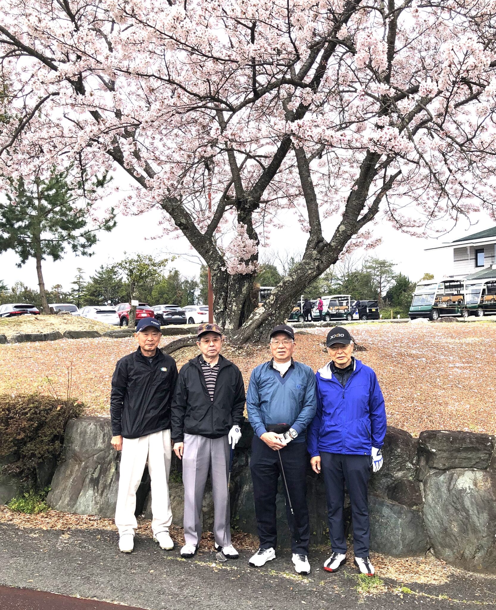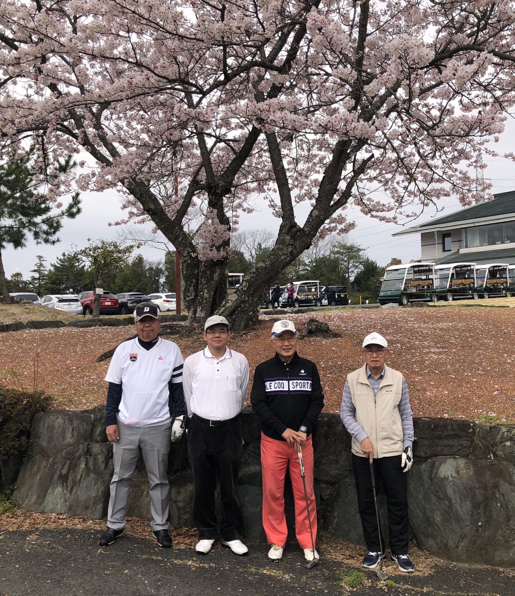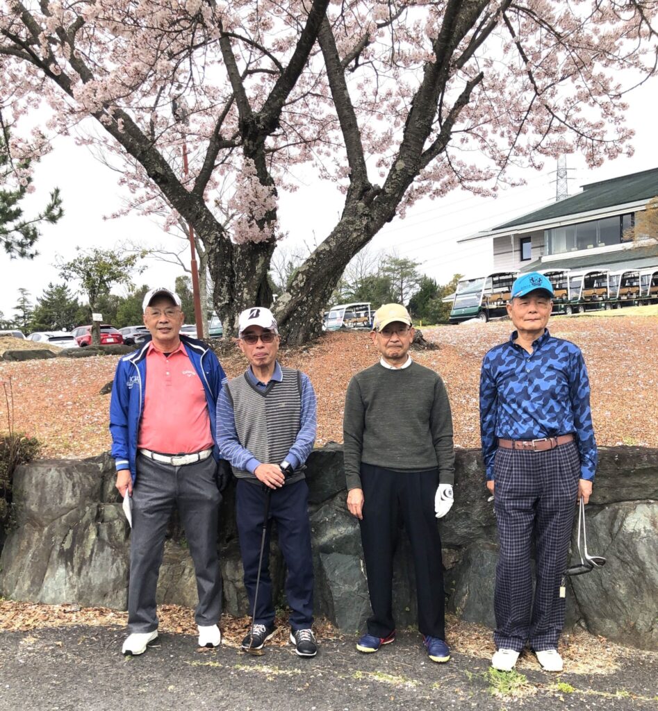 桜吹雪の中で一時雨に打たれながらも、和気あいあいの楽しいラウンドが出来ました。