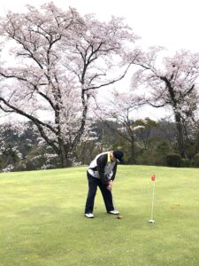 - 花吹雪の中でのパター練習