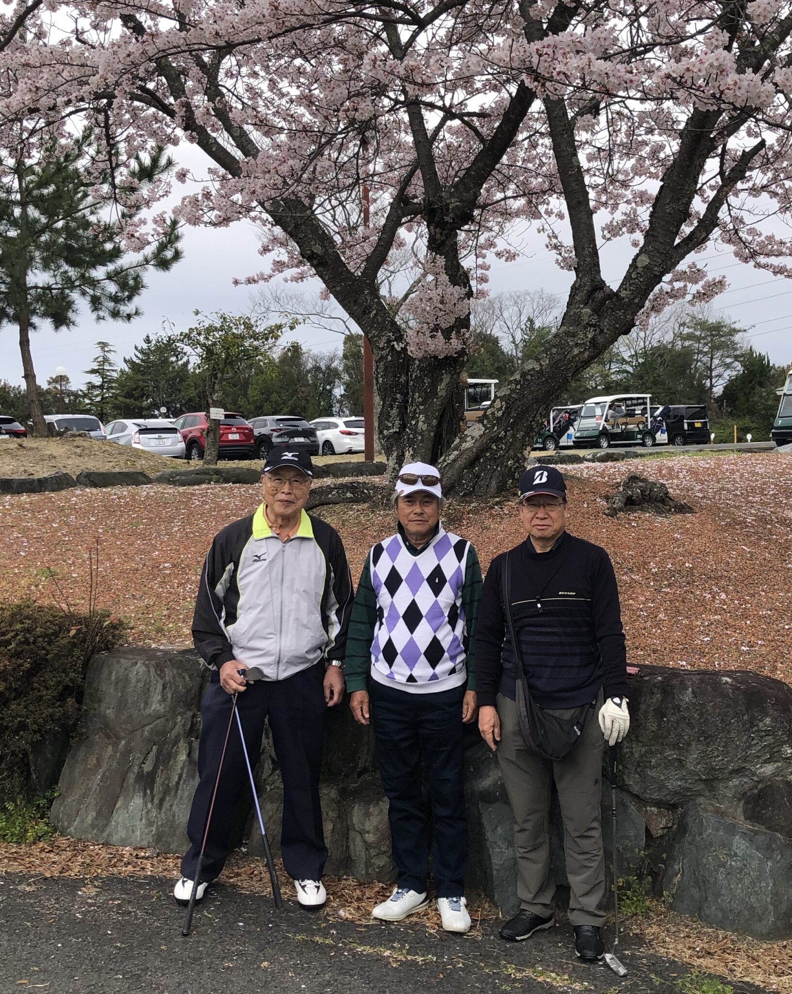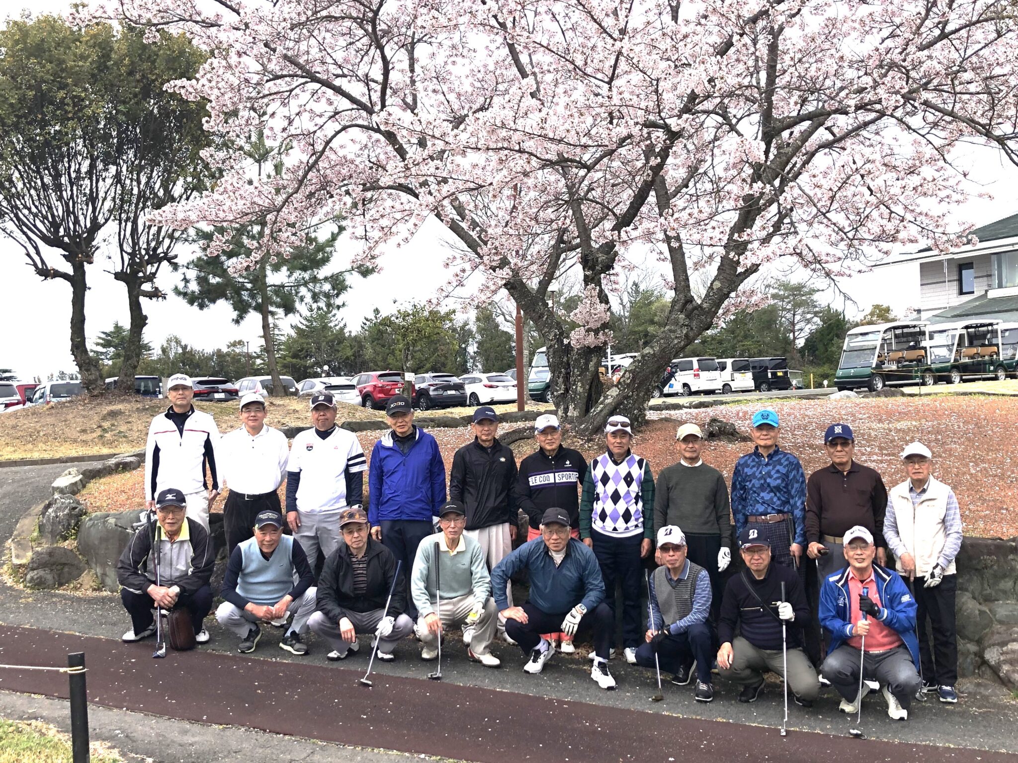 桜吹雪の中で一時雨に打たれながらも、和気あいあいの楽しいラウンドが出来ました。