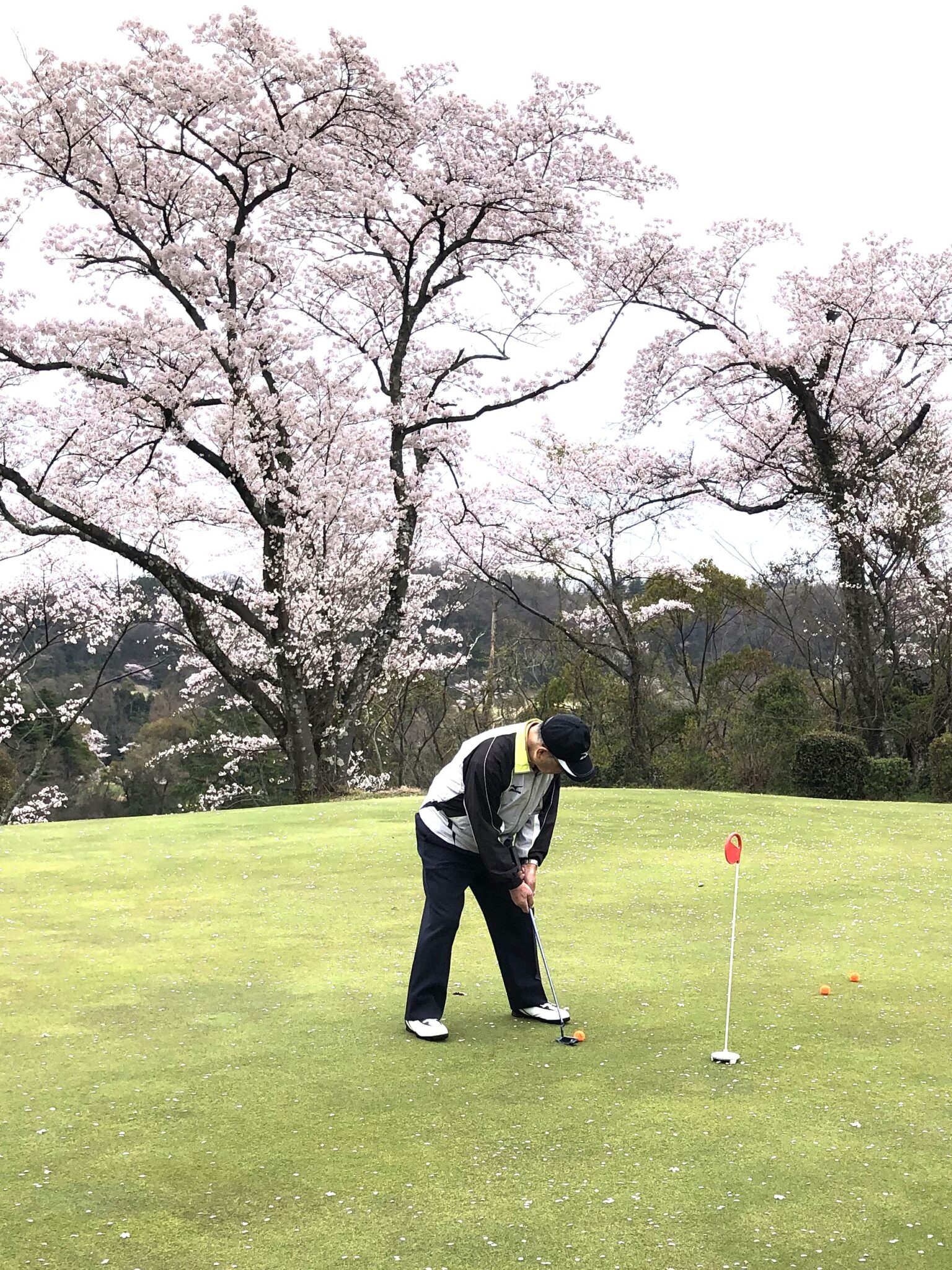 - 花吹雪の中でのパター練習