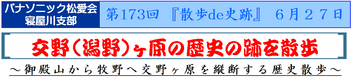 御殿山駅(出発)⇒ 御殿山神社(集合写真)⇒ 渚の院址 ⇒ 車塚公園・牧野車塚古墳(昼食) ⇒ 杉ケ本神社 ⇒ 九頭神廃寺 公園 ⇒ 牧野公園(伝 阿弓流為之塚 ⇒ 片埜神社(集合写真) ⇒ 牧野駅(解散)