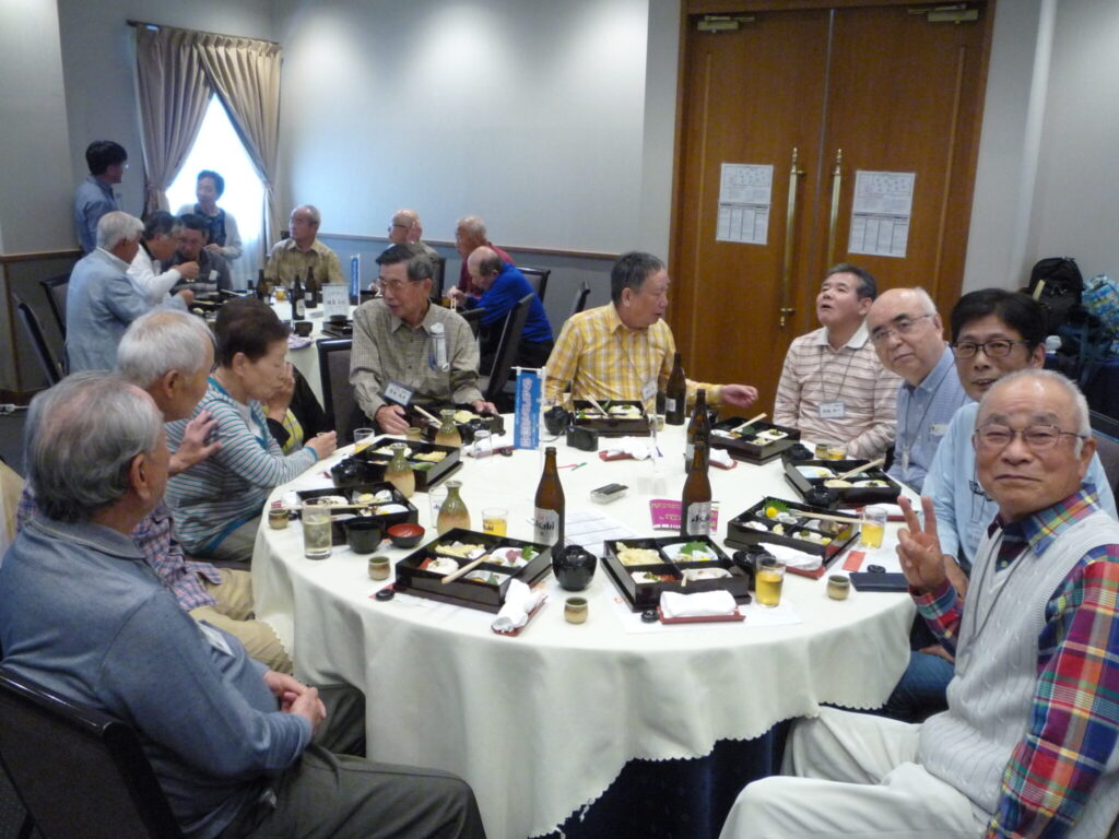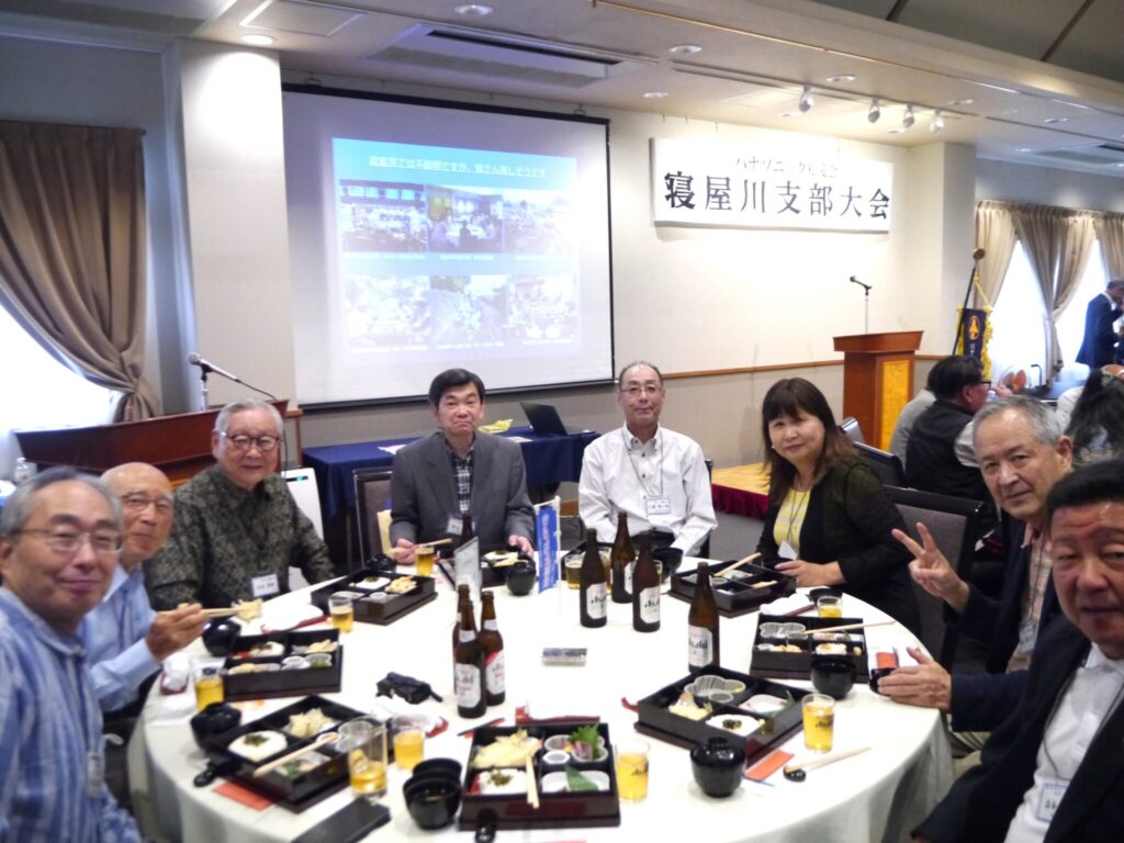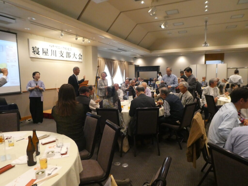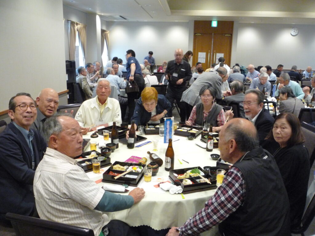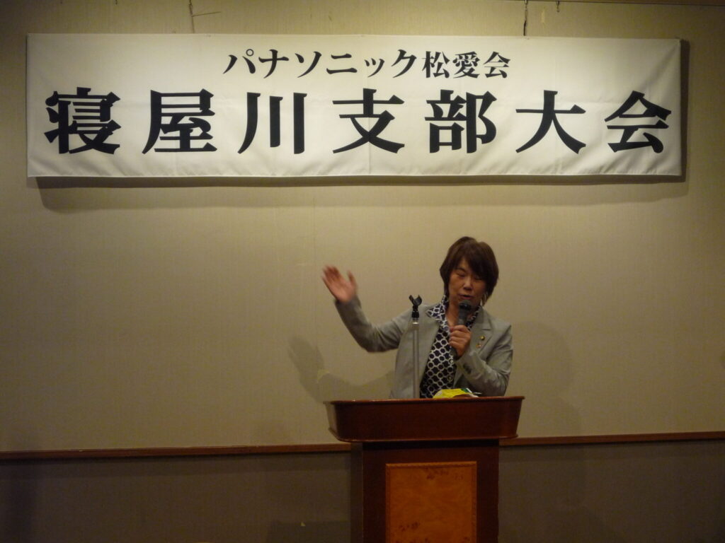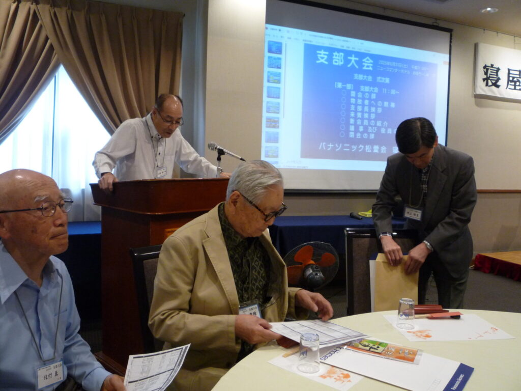 第3部 お楽しみの昼食懇親会で、久野寝屋川市議会議員から大会開催の祝辞も頂きました。仲間との再会・懇談に加え、抽選会もあって賑やかに過ごすことができました。