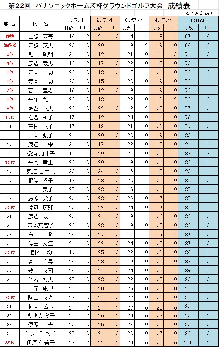 今回は協賛のパナソニックホームズ(株)様も競技に参加されて、総勢39人の元気な会員がエントリーして熱い戦が繰り広げられました。