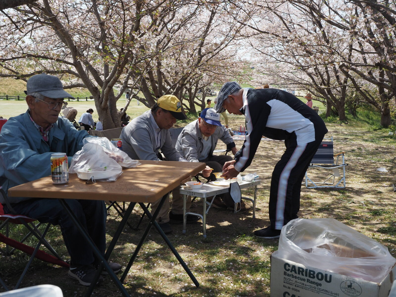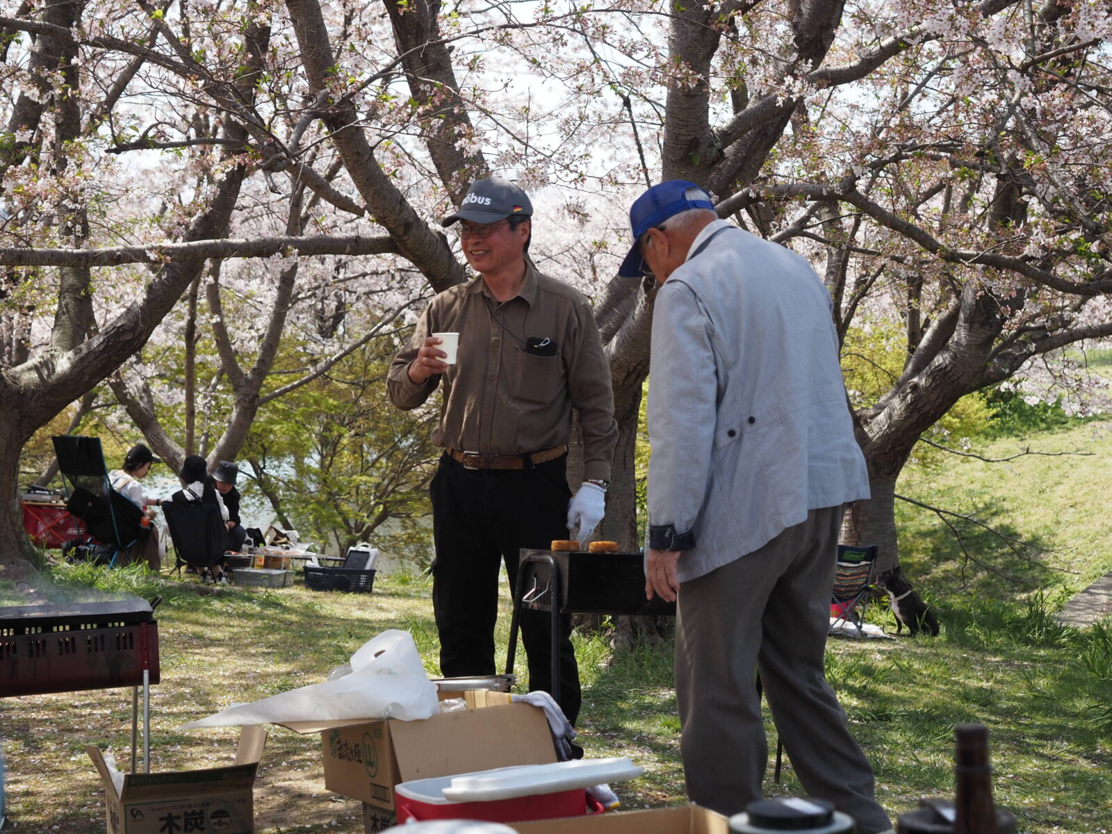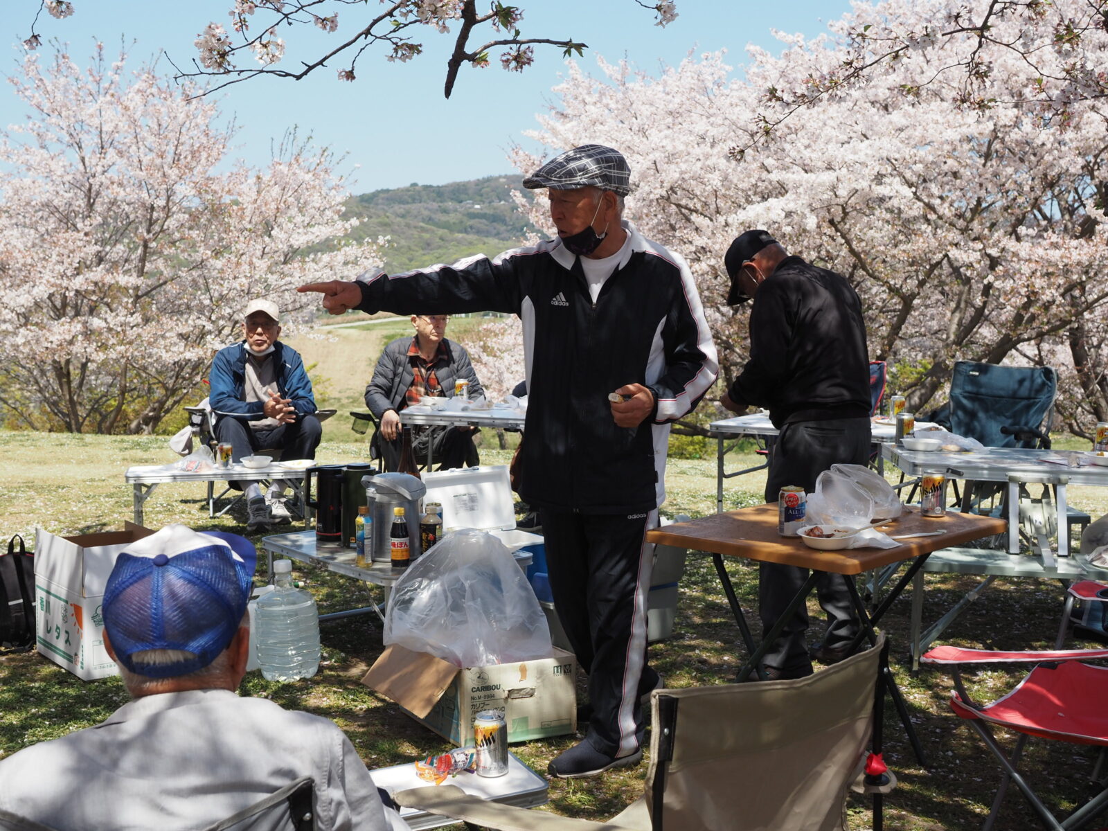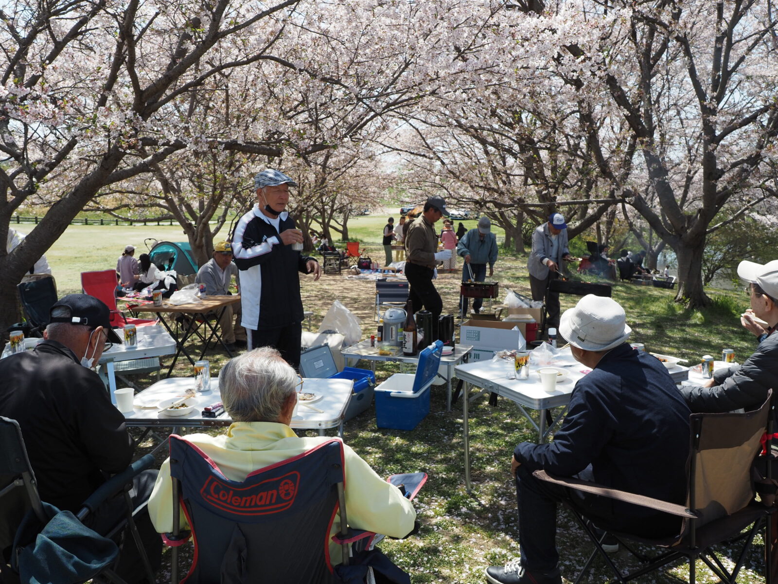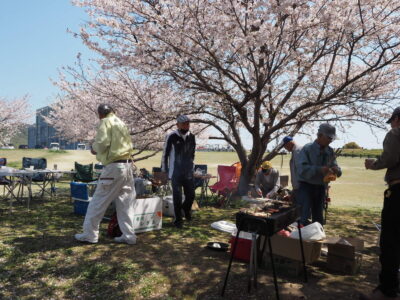 新型コロナウィルスの緊急宣言の解除が進み、マスクの装着も適宜となり、会員の開催希望のもと、盛大に実施しました。会員13名の参加で、桜も満開のもと、バーベキューを食べながら、アルコールも解禁で楽しく懇談しました。
