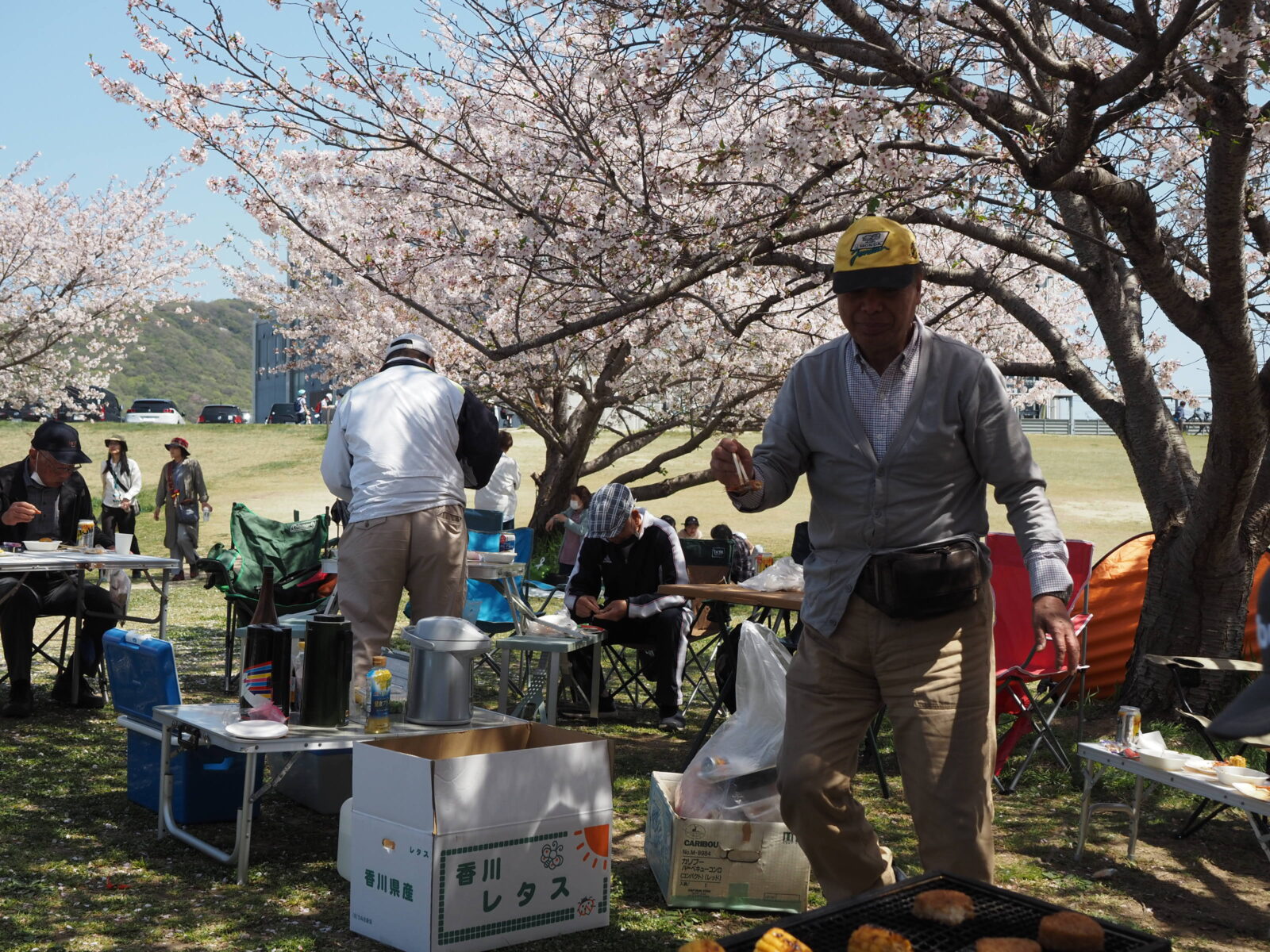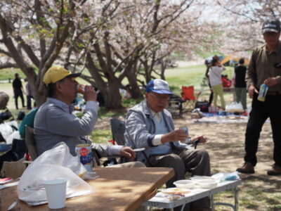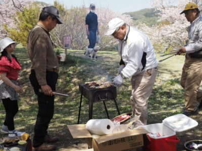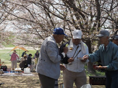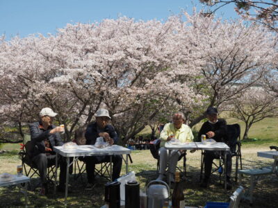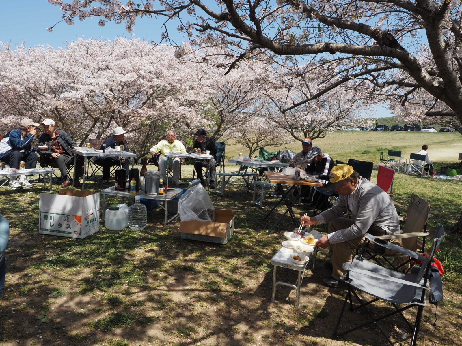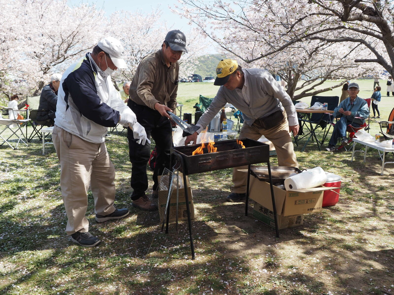 新型コロナウィルスの緊急宣言の解除が進み、マスクの装着も適宜となり、会員の開催希望のもと、盛大に実施しました。会員13名の参加で、桜も満開のもと、バーベキューを食べながら、アルコールも解禁で楽しく懇談しました。