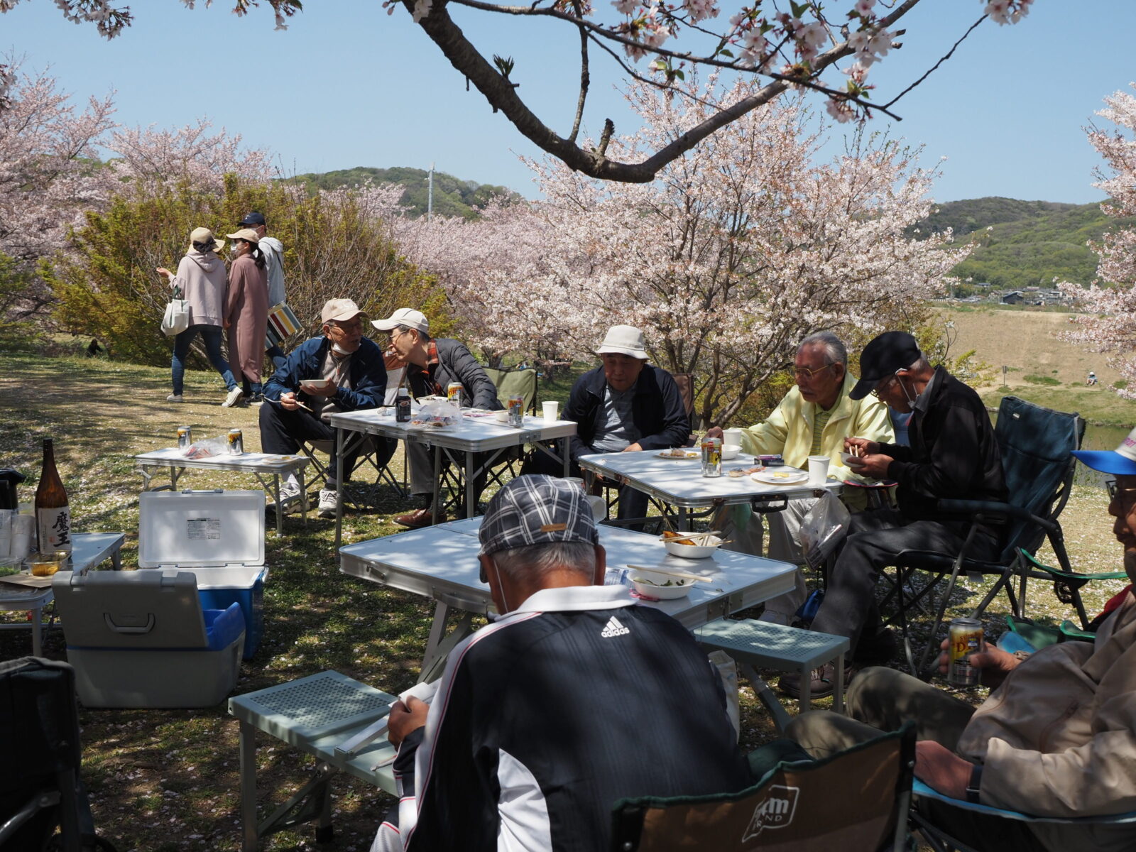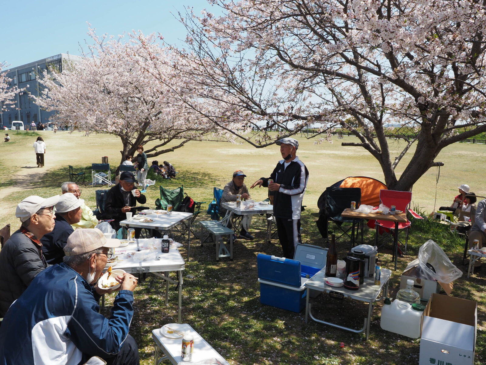 第90回後楽会「花見」を「百聞川せせらぎ広場」で開催しました。