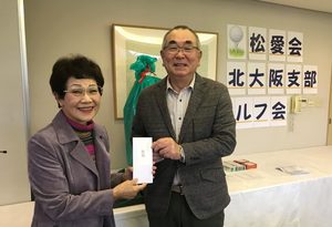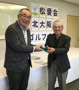 11月22日、いい夫婦の日に優勝出来ましたのは本当にラッキーでした。岡崎さん、山本さん、佐々木さんとメンバーにも恵まれ楽しいゴルフでした。18年間楽しみにして、参加させて頂いたそのご褒美だと思います。 第75回の時は丁度75歳で皆勤賞を頂きながら、その後、体の故障で3回程ゴルフが出来ず、2度とゴルフが出来ないのかと諦めていましたが、80歳までは好きなゴルフはやりたいとリハビリに努め頑張ってまいりました。その矢先に今回の優勝です。本当に嬉しかったです。ありがとうございました。(優勝者談)