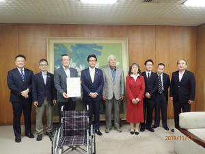 2019年11月13日(水)に車椅子を豊中市に贈呈いたしました。豊中市には3台目の贈呈となります。当日は雲一つない爽やかな秋晴れの中,市長応接室で行われました。