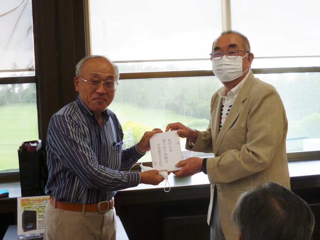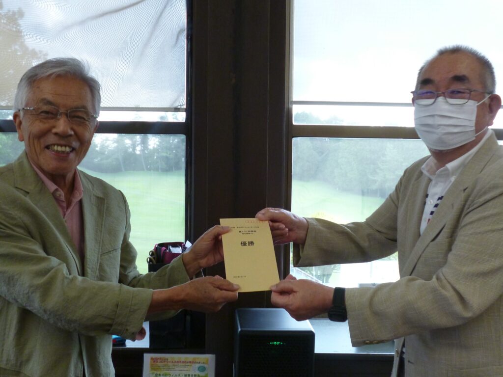 その中でも、平野信次さんは6アンダーで2例会連続優勝、しかも栄えあるエイジシュートを達成、クラブから表彰状を授与されました。
