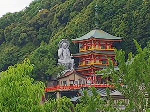 梅雨入りで湿度高く、蒸し暑くて、大汗をかきながら 信貴山ハイキングに行って来ました。幸い雨に降られず良かったです。皆さん 熱中症にならずに快適に歩きました。朝護孫子寺は、とても大きく立派でした。寺社参りだけでゆっくり来たい位です。毘沙門天本堂 見学後 世界一の福寅で集合写真。信貴山ケーブル跡を歩いて下山し、信貴山下駅で解散しました。登りは前回の葛城山より厳しかったのに、全体的には楽だったとのこと。次回も楽しみです。