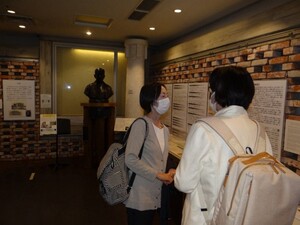2022.11 俳句クラブ 秋の吟行 北大阪支部 俳句クラブ 秋の吟行 中之島界隈 令和4年11月4日 大阪市中央公会堂(重要文化財指定) 句会風景 公会堂 第一会議室 公会堂 展示室 薔薇の花 薔薇園にて 薔薇園 全景 こども本の森 中之島 こども本の森 「りんご」のオブジェ前