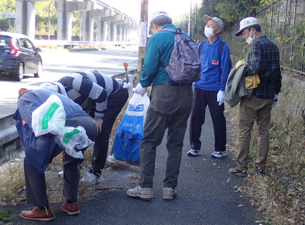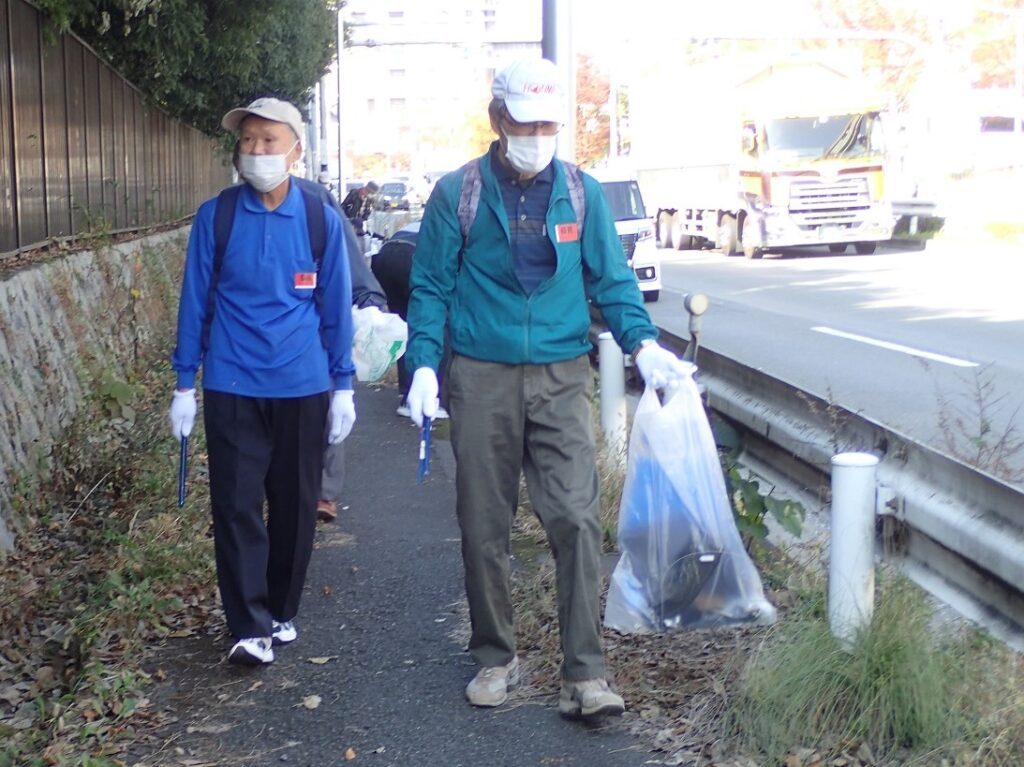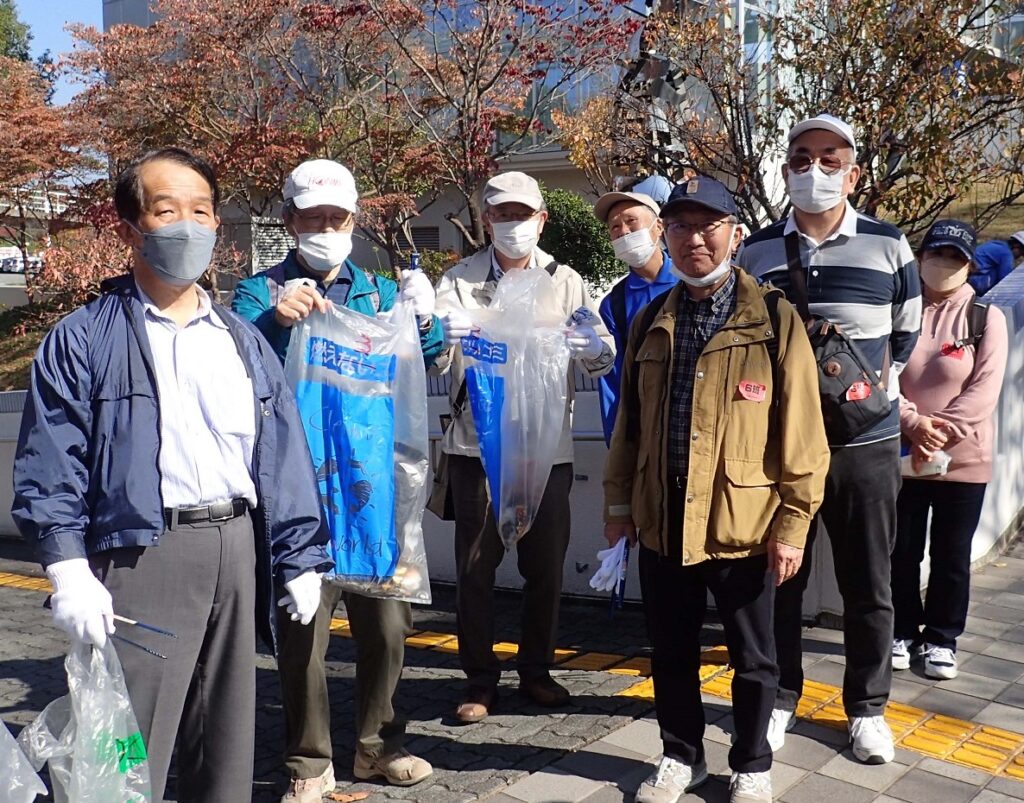外周道路を周回しながら定められた区間のごみを収集するもので、参加団体27団体総勢340人で北大阪からは11名が参加しました。当日は汗ばむような天気で、比較的歩きなれた会員の参加で約1時間で一周しましたが、年々ごみの量は少なくなっており「たばこのフィルター」が目立っていました。収集したごみよりも手に持っているごみ袋が目立った「ごみゼロウォーク」でした。