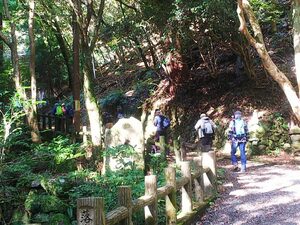 天上が岳からは自然研究路2号線を通って百年橋に降りる予定でしたが、下見の際、滑りやすい石の急階段があり、安全第一でビジターセンター周りにルートを変更しました。